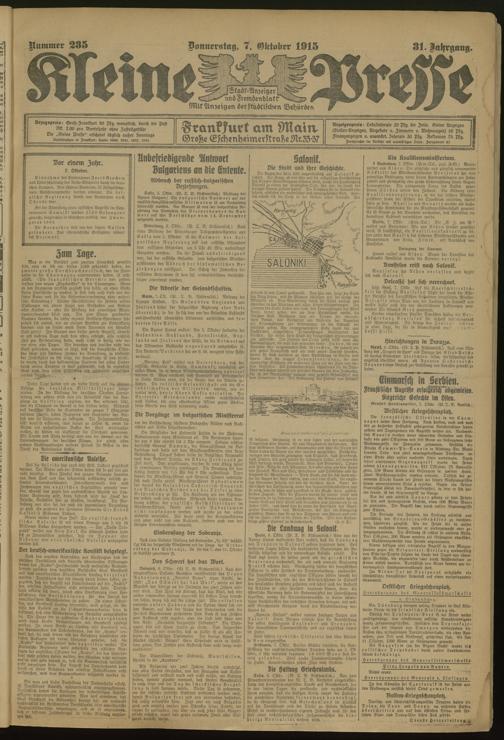 Regionale Zeitungen aus der Zeit des Ersten Weltkrieges