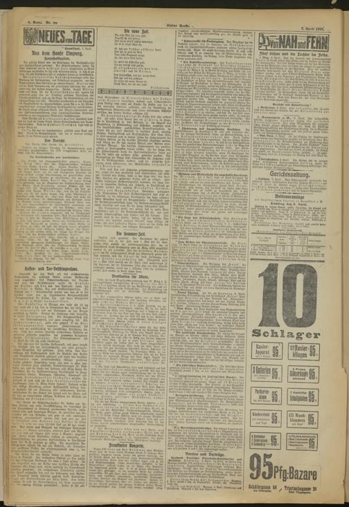 Regionale Zeitungen aus der Zeit des Ersten Weltkrieges