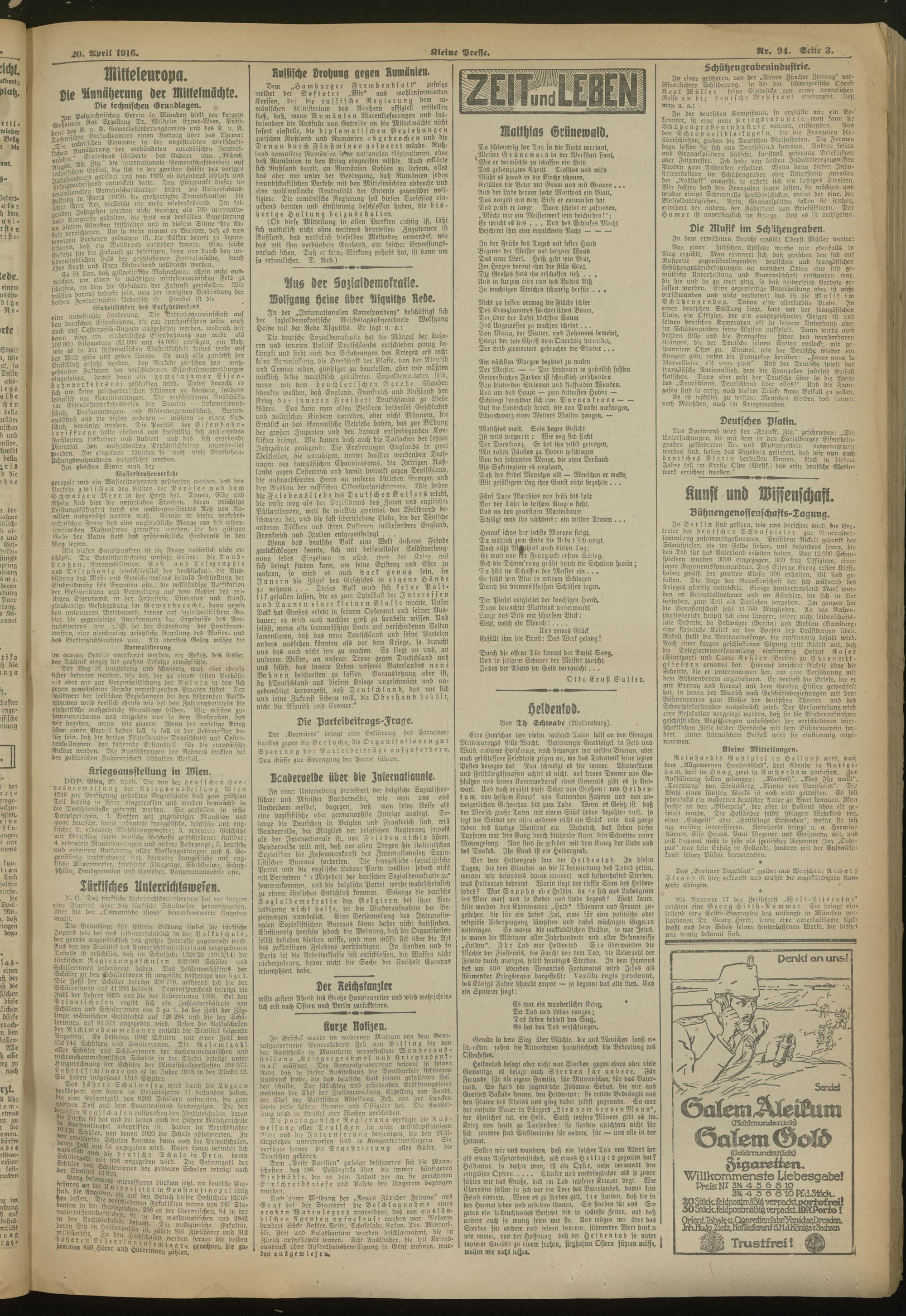 Regionale Zeitungen aus der Zeit des Ersten Weltkrieges