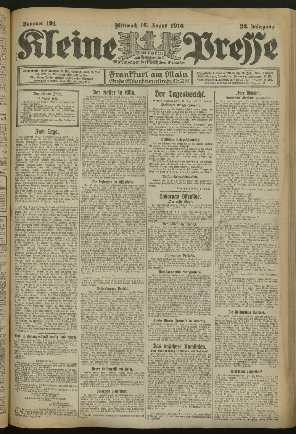 Regionale Zeitungen aus der Zeit des Ersten Weltkrieges