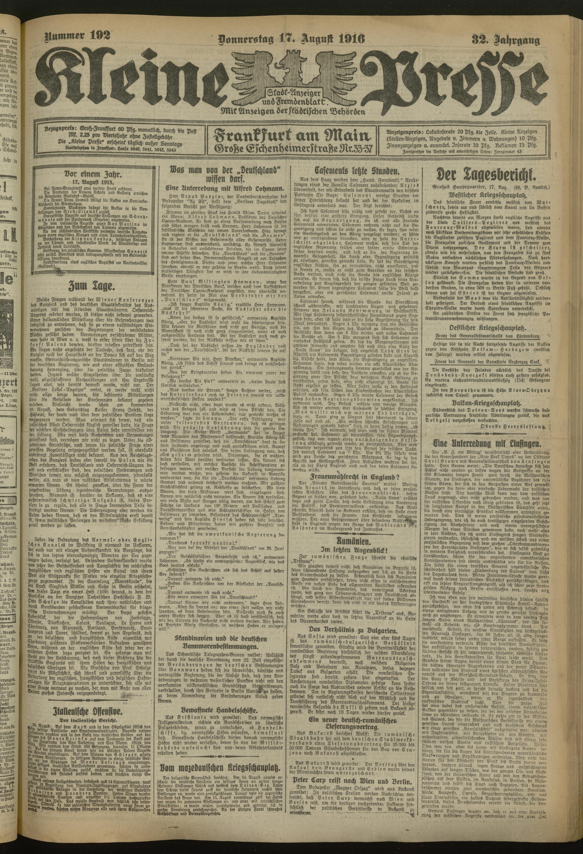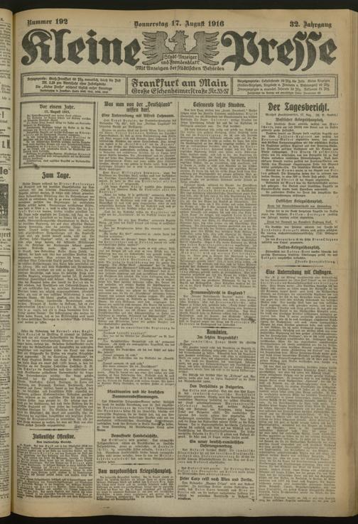 Regionale Zeitungen aus der Zeit des Ersten Weltkrieges
