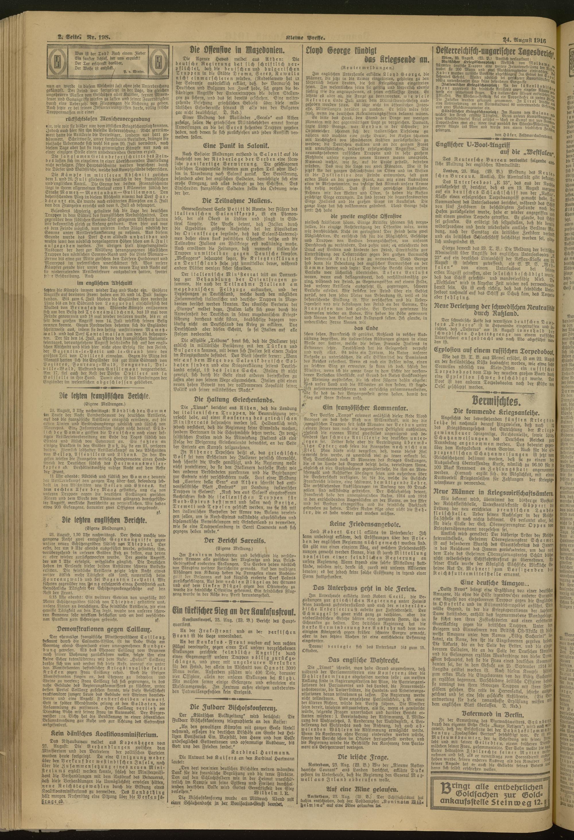 Regionale Zeitungen aus der Zeit des Ersten Weltkrieges