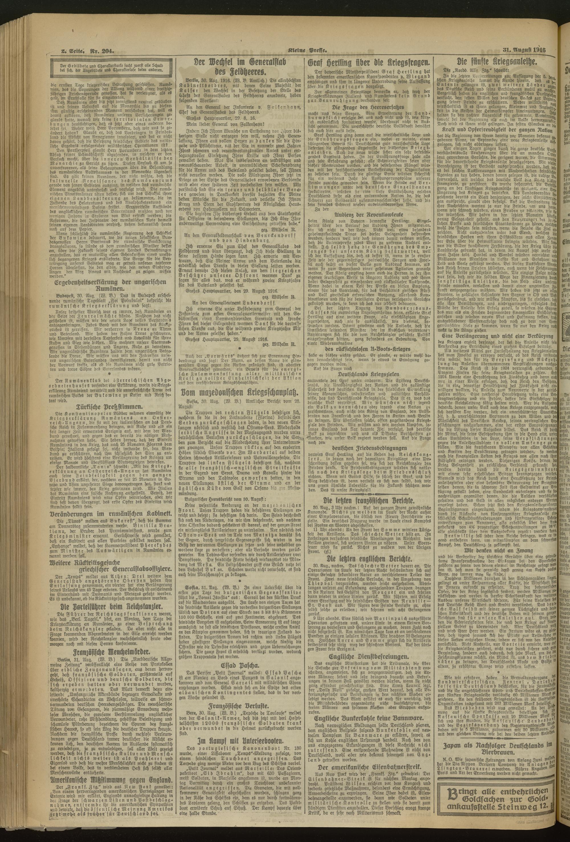 31.08.1916 = Nr. 204