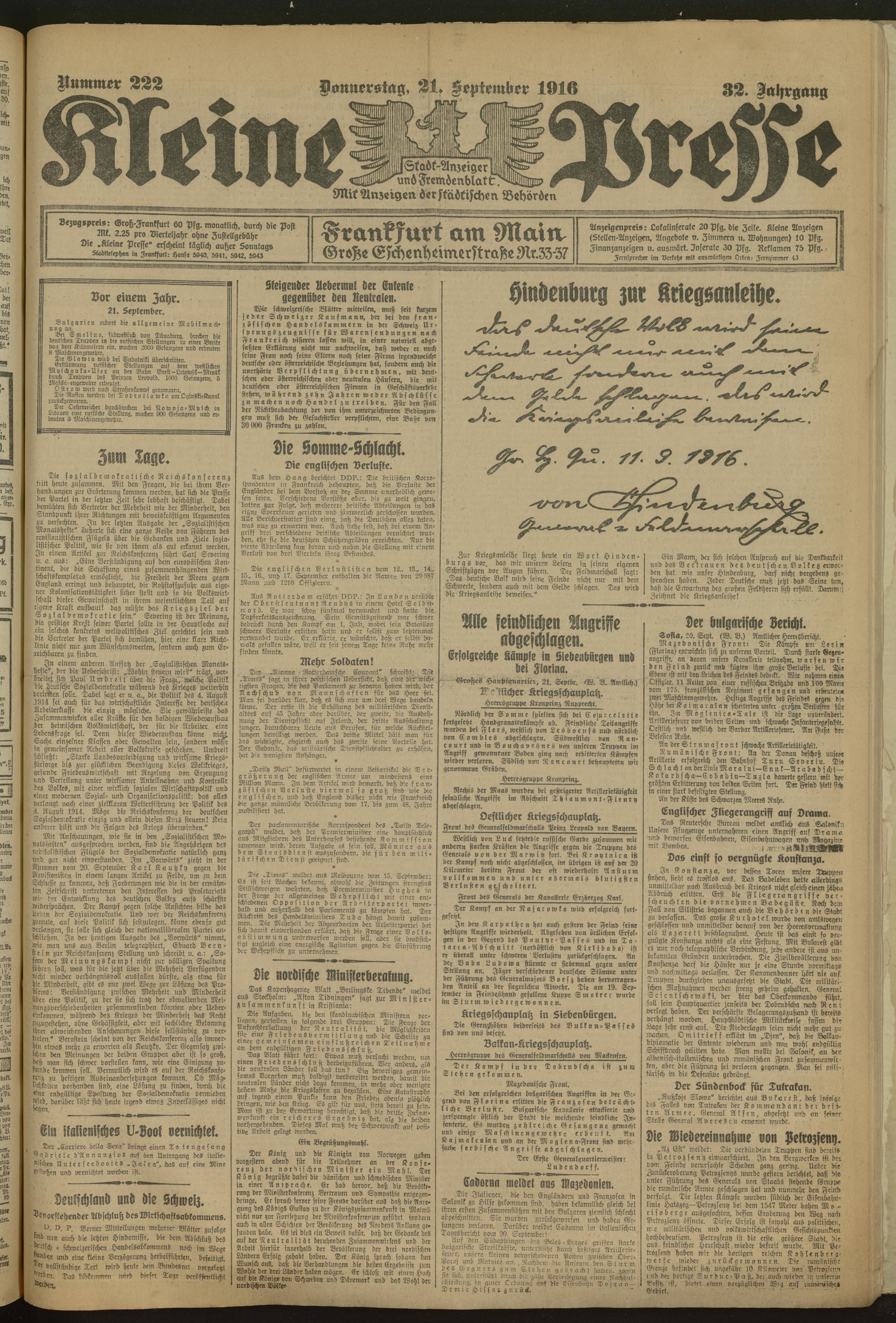 21.09.1916 = Nr. 222