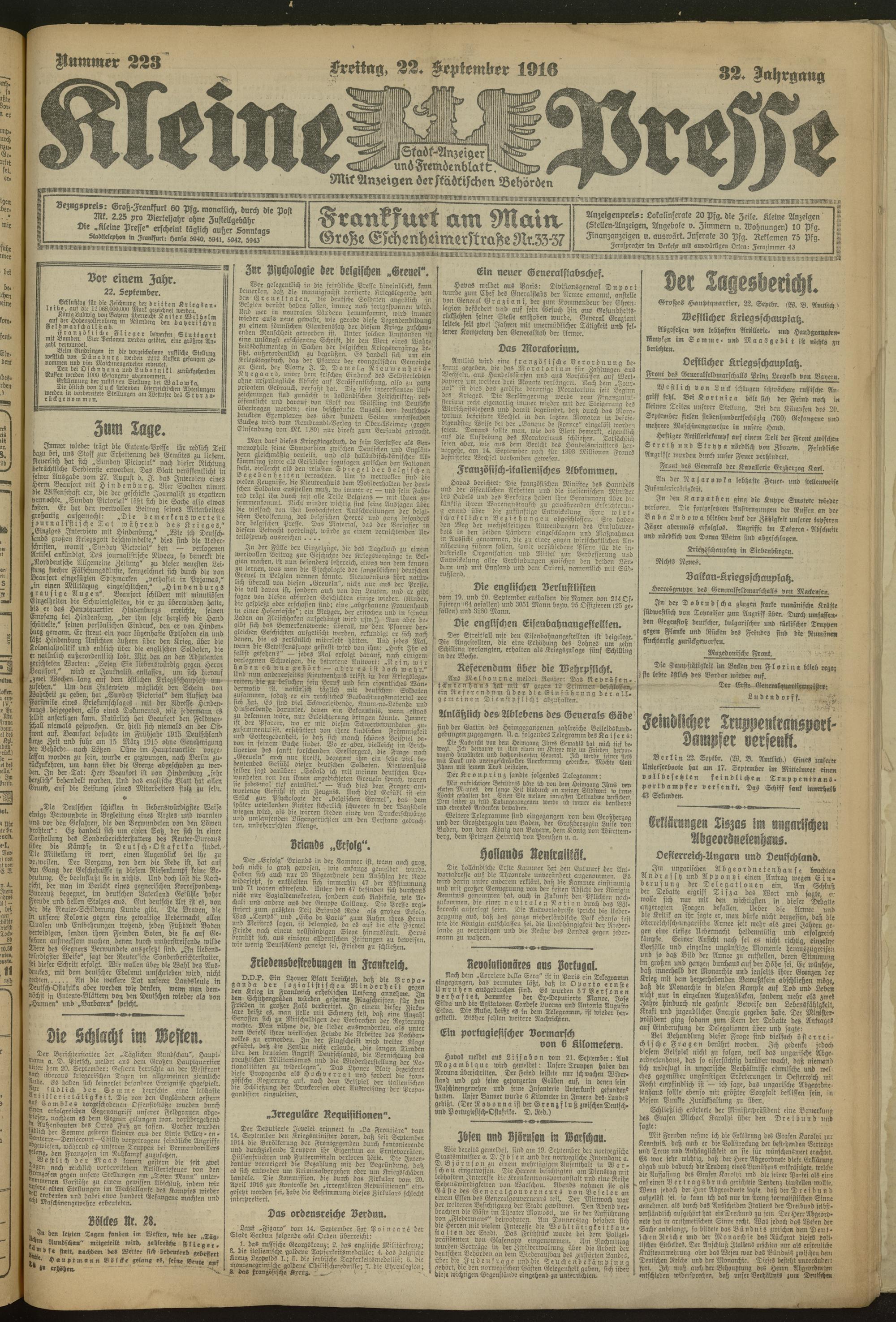 22.09.1916 = Nr. 223