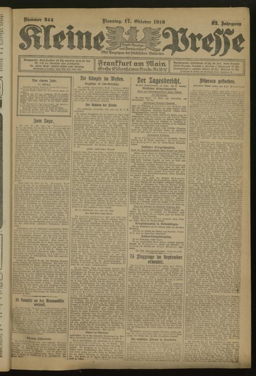 Regionale Zeitungen aus der Zeit des Ersten Weltkrieges