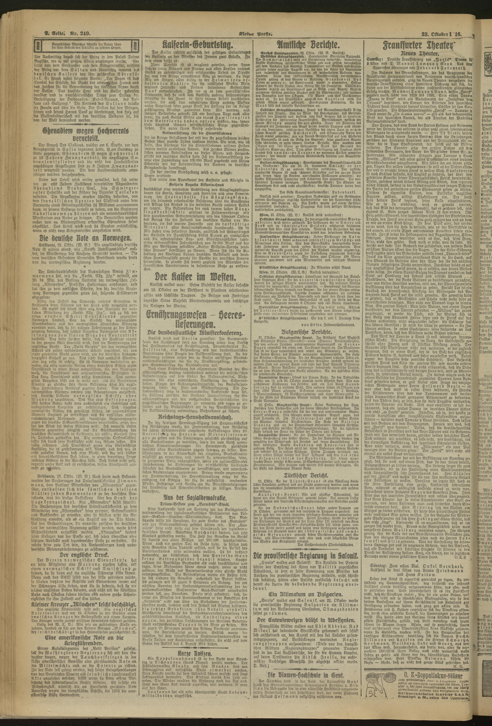 23.10.1916 = Nr. 249