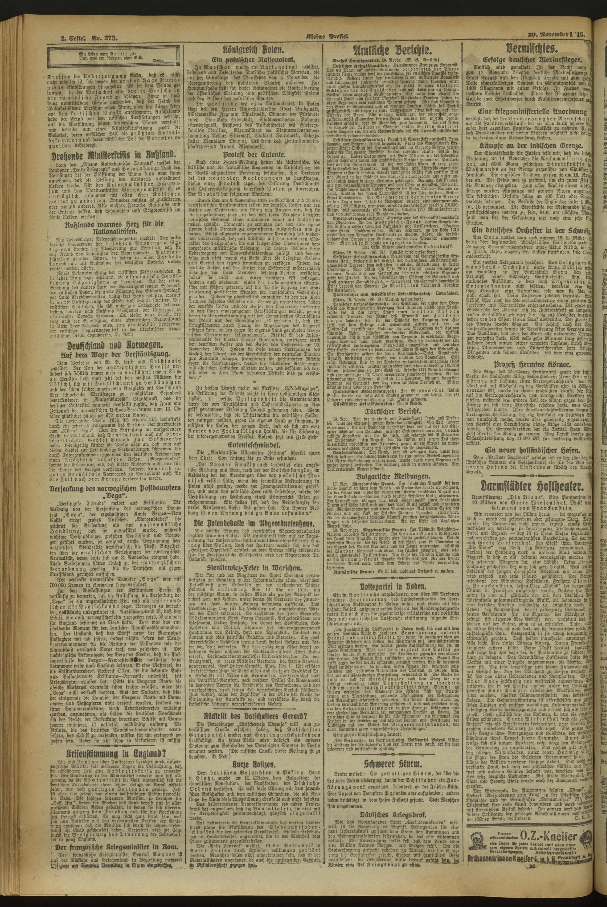 20.11.1916 = Nr. 273