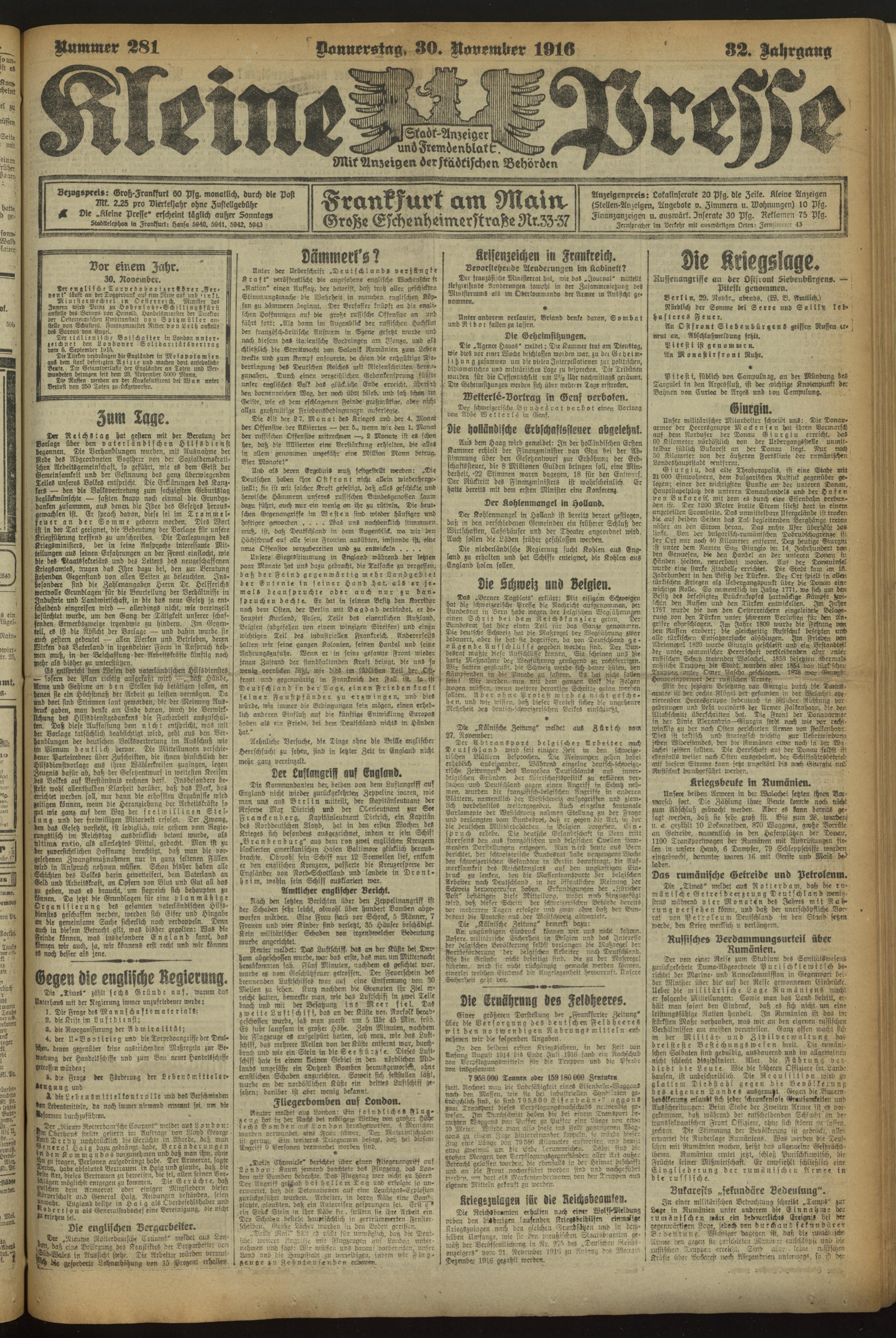 30.11.1916 = Nr. 281