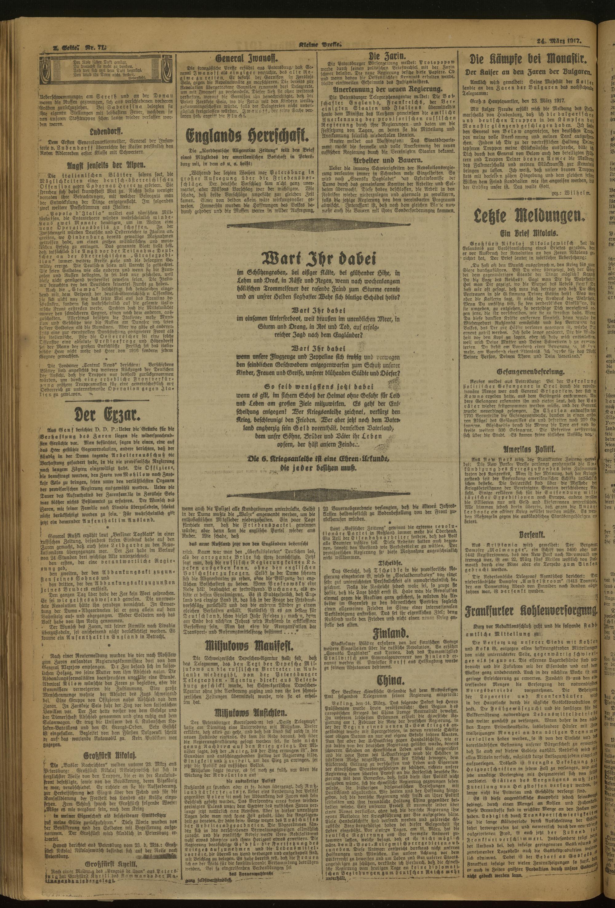 Regionale Zeitungen aus der Zeit des Ersten Weltkrieges