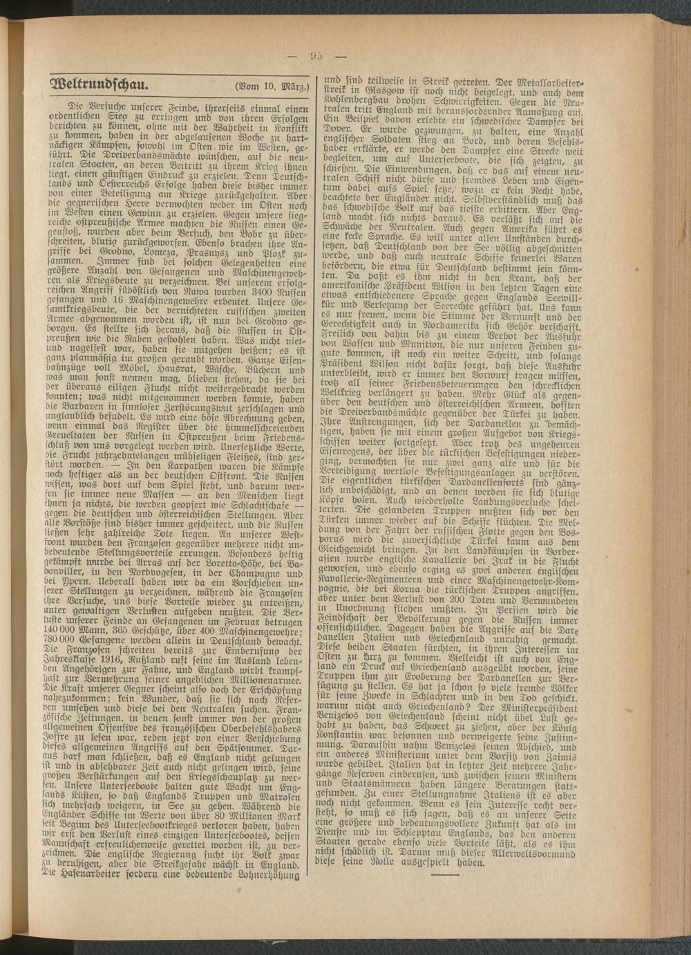 Regionale Zeitungen aus der Zeit des Ersten Weltkrieges