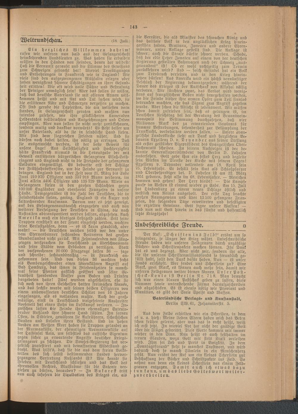 Regionale Zeitungen aus der Zeit des Ersten Weltkrieges