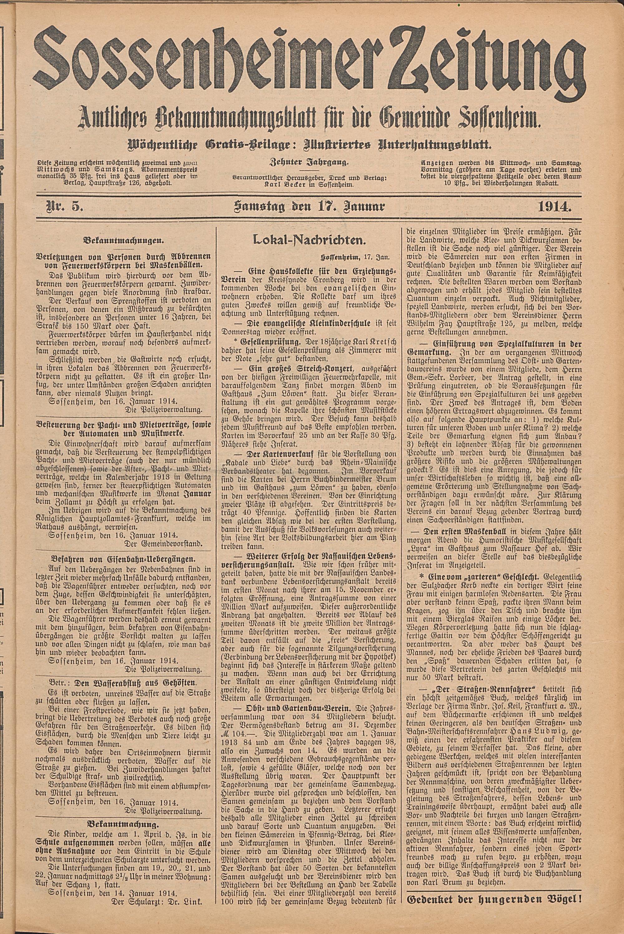 Regionale Zeitungen aus der Zeit des Ersten Weltkrieges