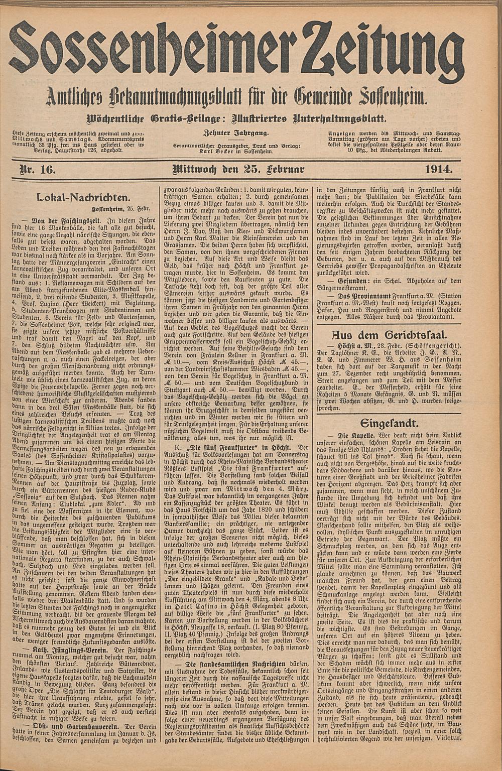 Regionale Zeitungen aus der Zeit des Ersten Weltkrieges