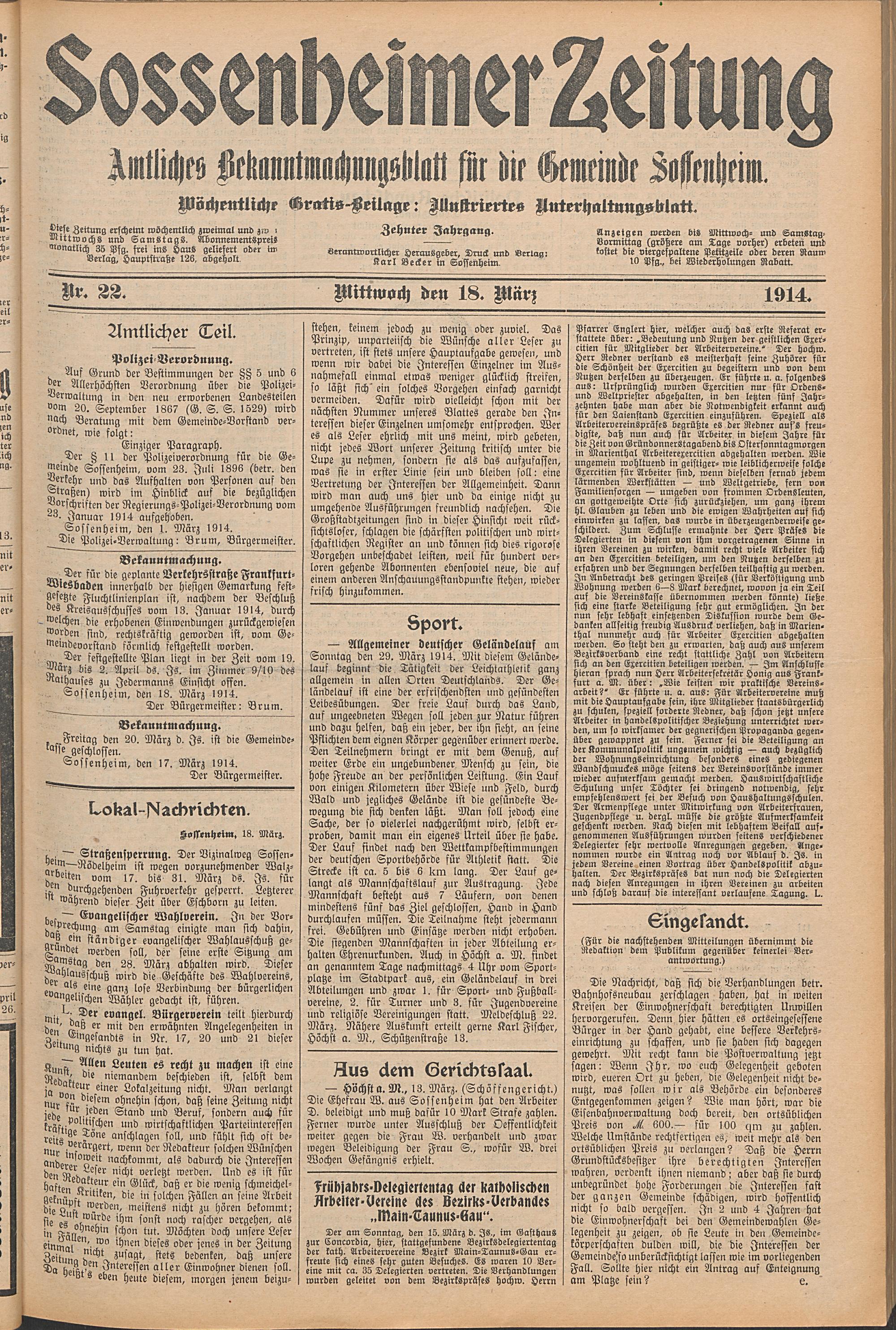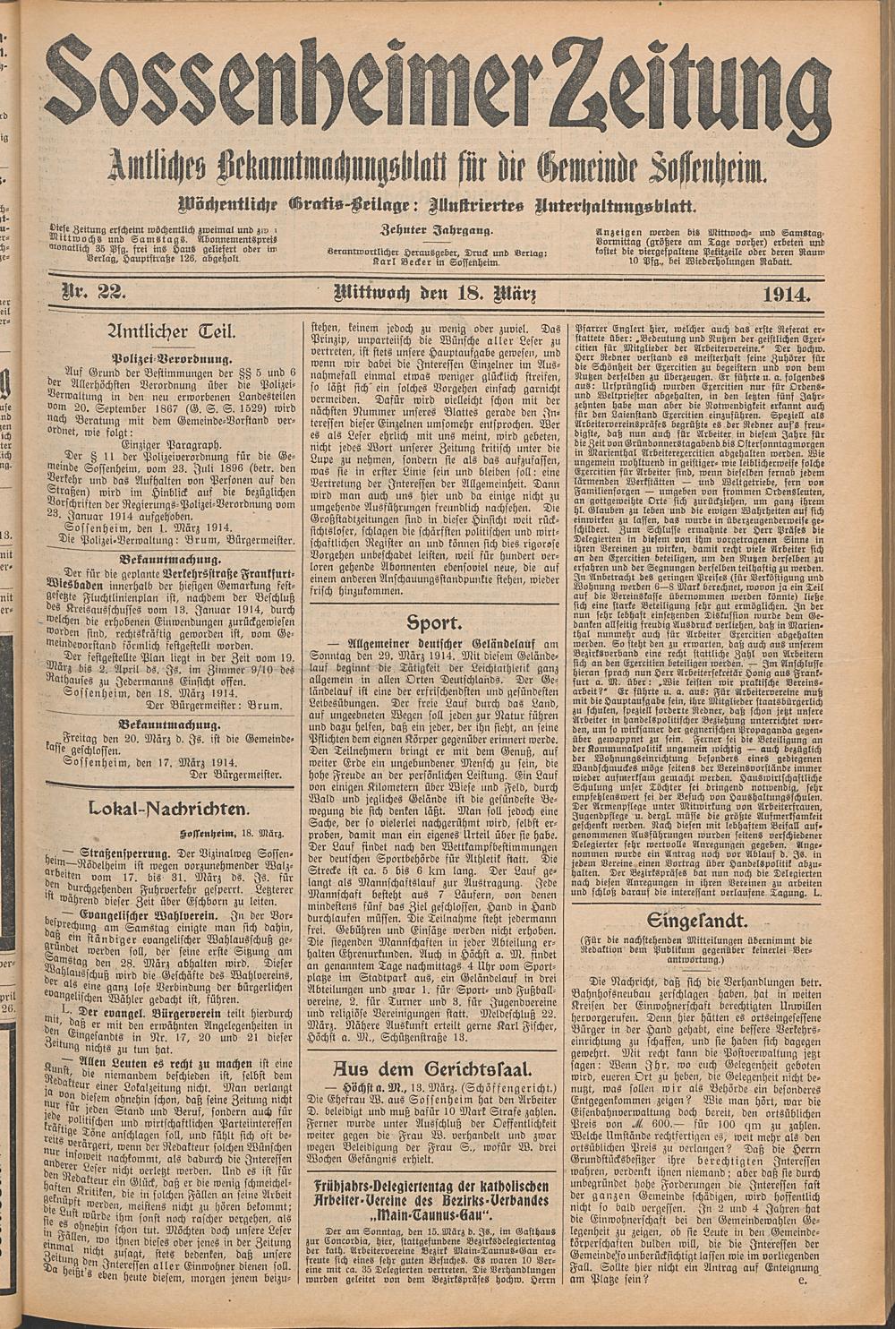 Regionale Zeitungen aus der Zeit des Ersten Weltkrieges