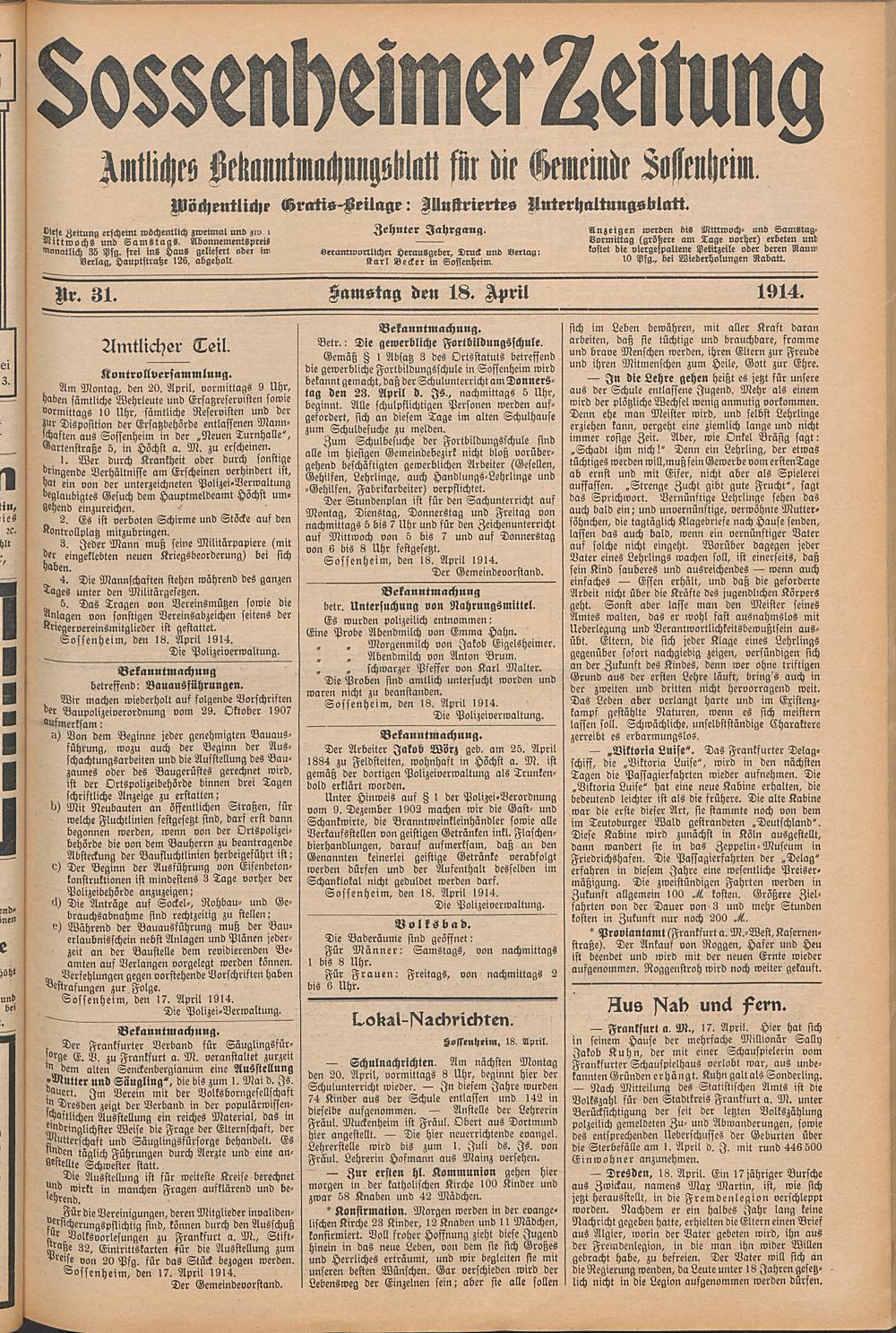Sossenheimer Zeitung. 1906-1927