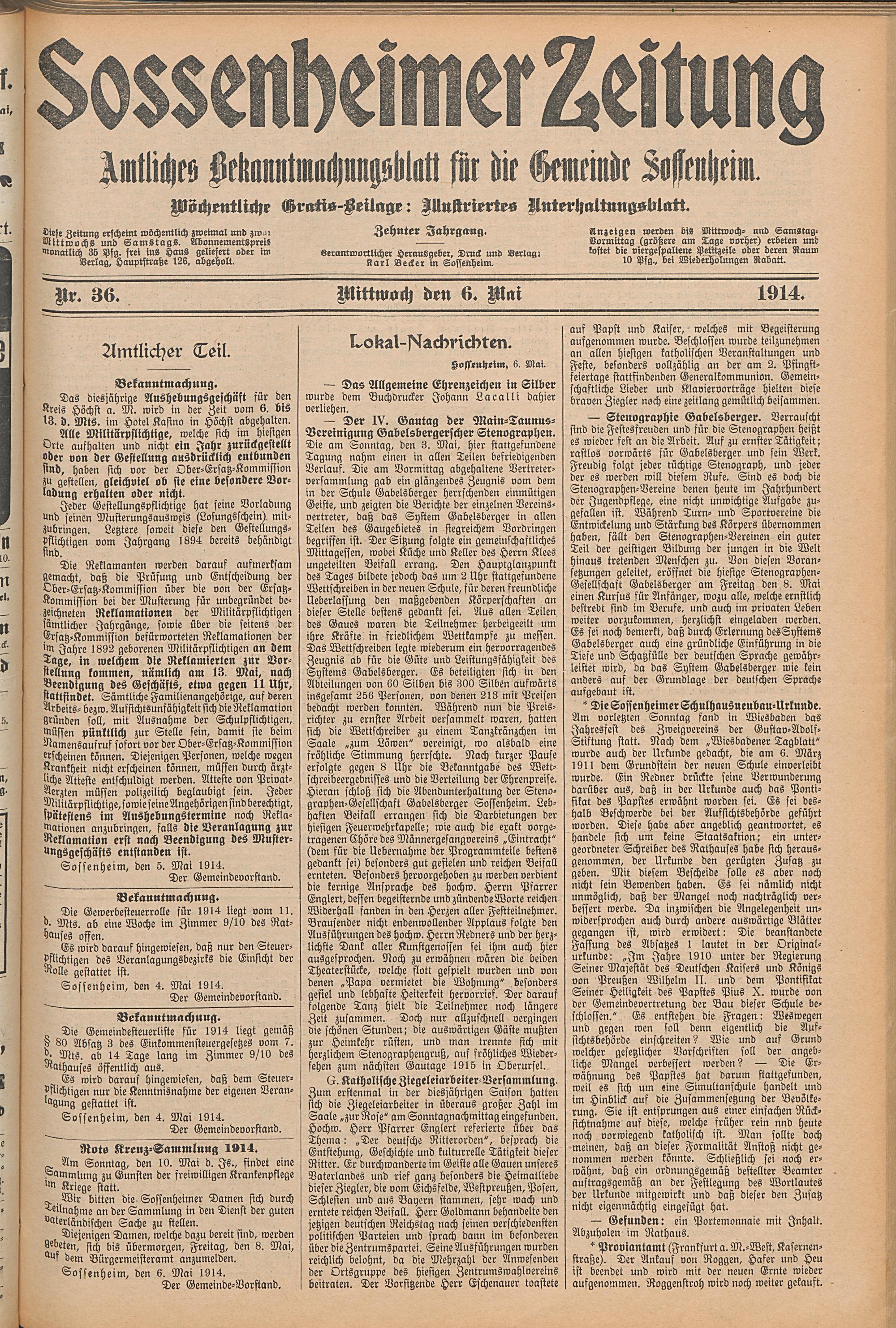 Regionale Zeitungen aus der Zeit des Ersten Weltkrieges