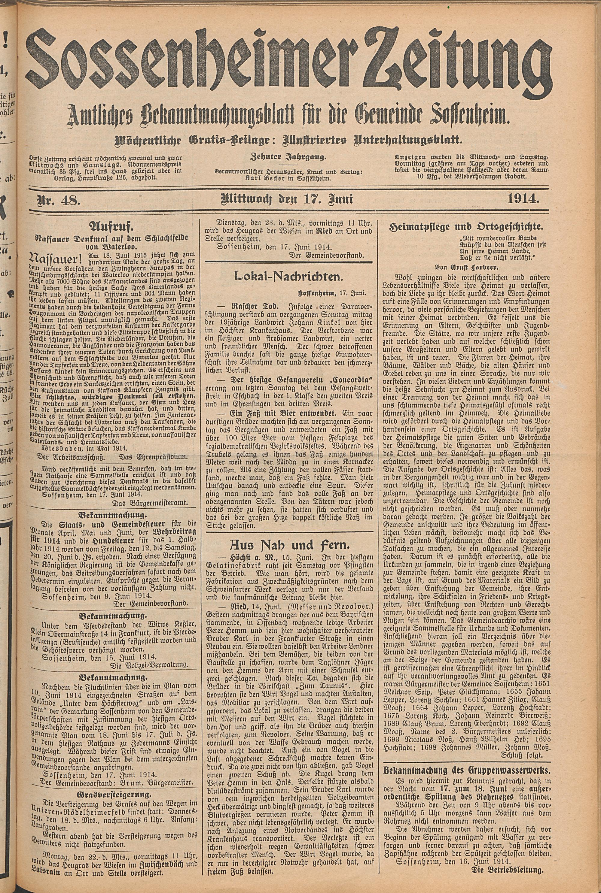 Regionale Zeitungen aus der Zeit des Ersten Weltkrieges