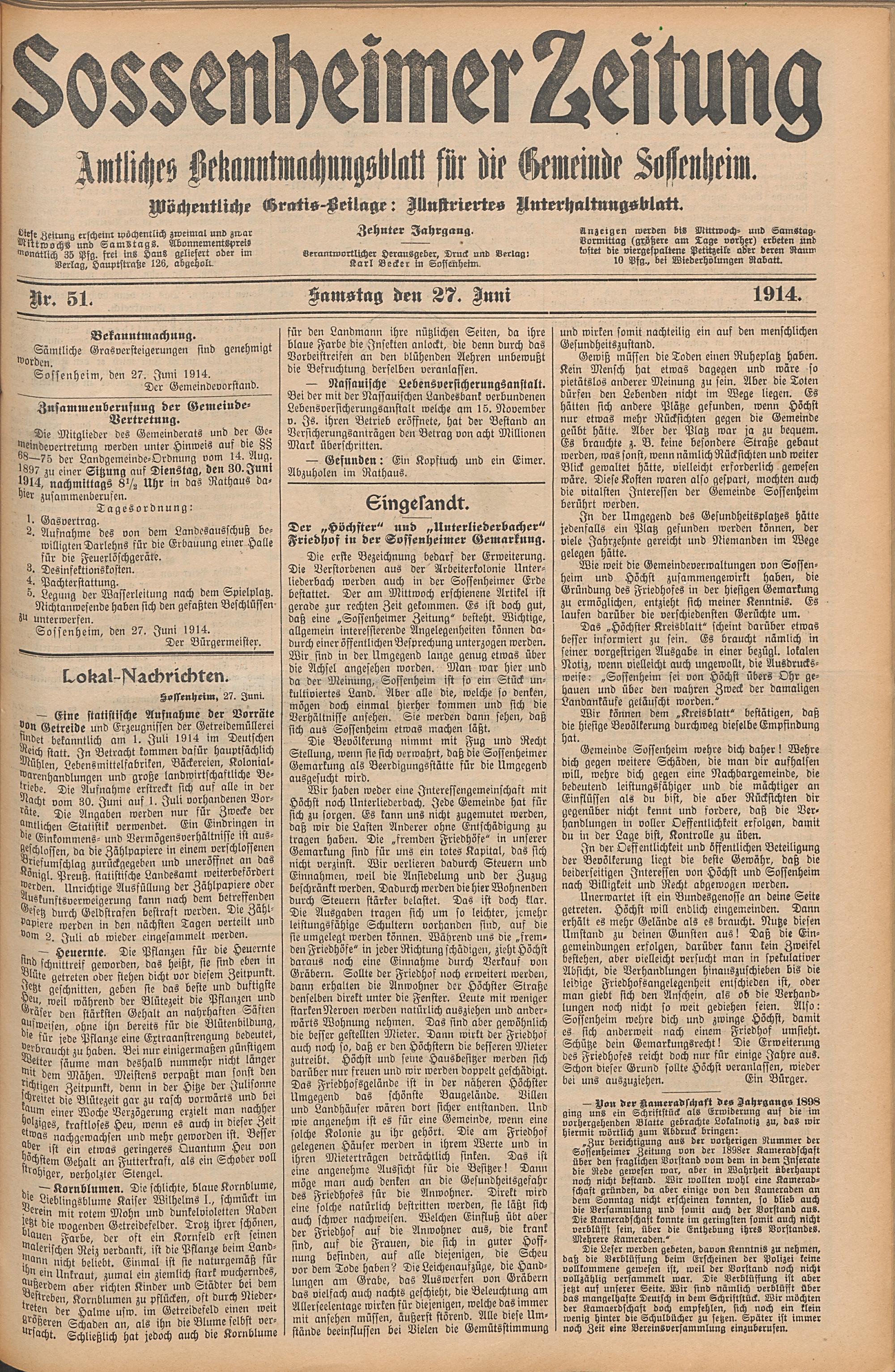 Sossenheimer Zeitung. 1906-1927