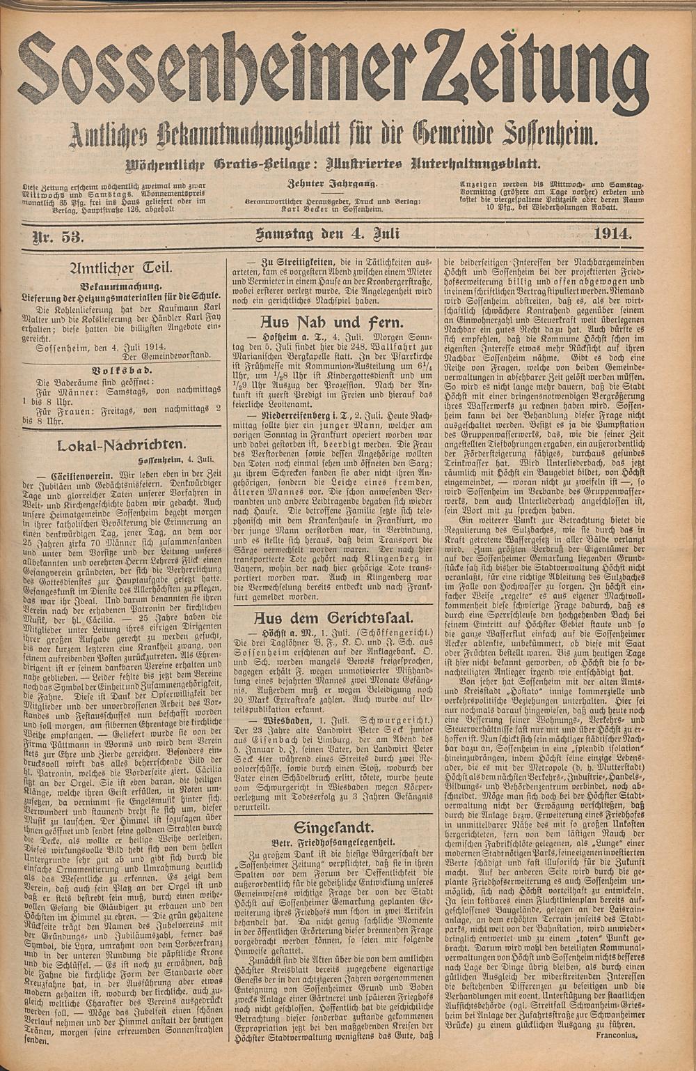 Sossenheimer Zeitung. 1906-1927