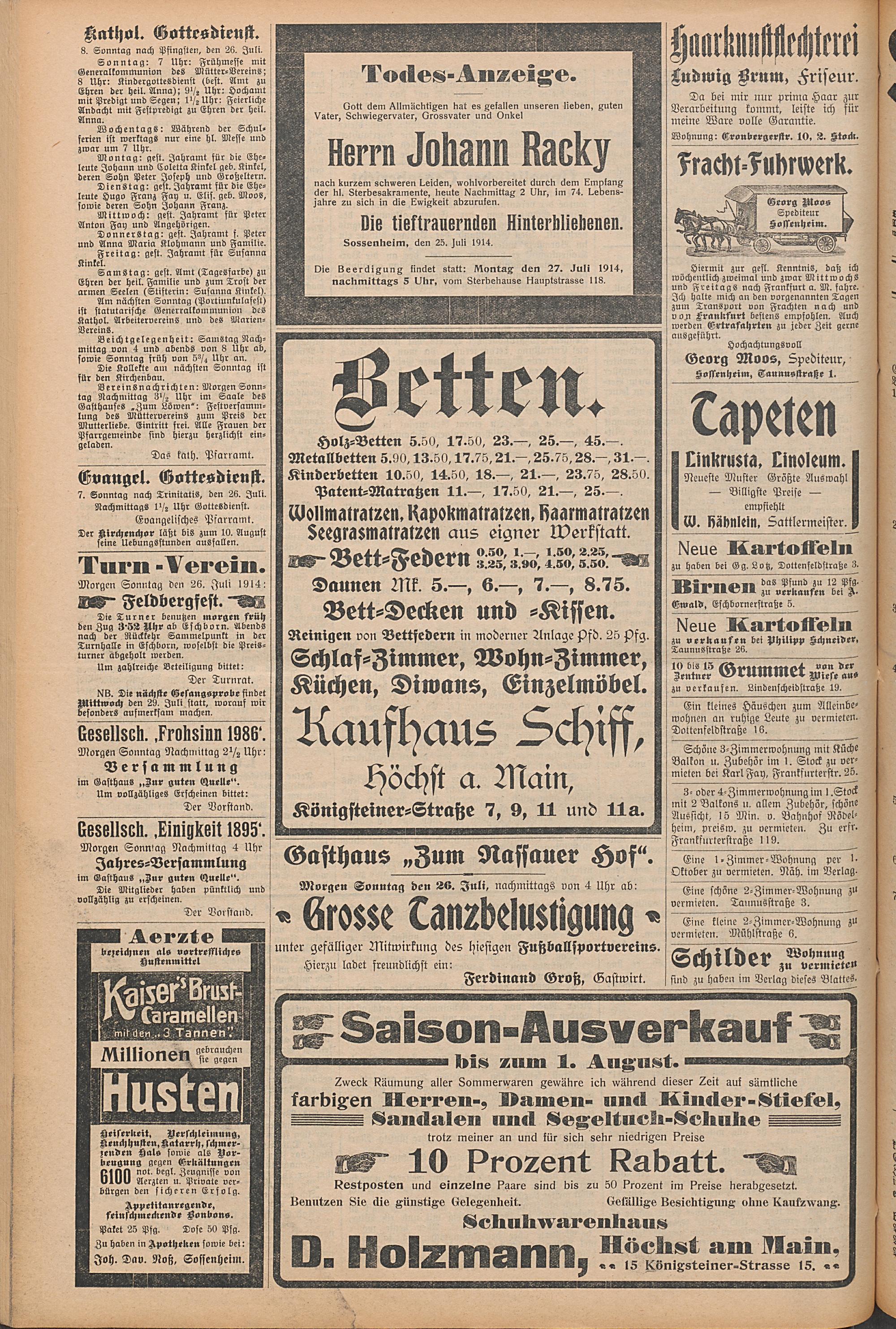 Regionale Zeitungen aus der Zeit des Ersten Weltkrieges