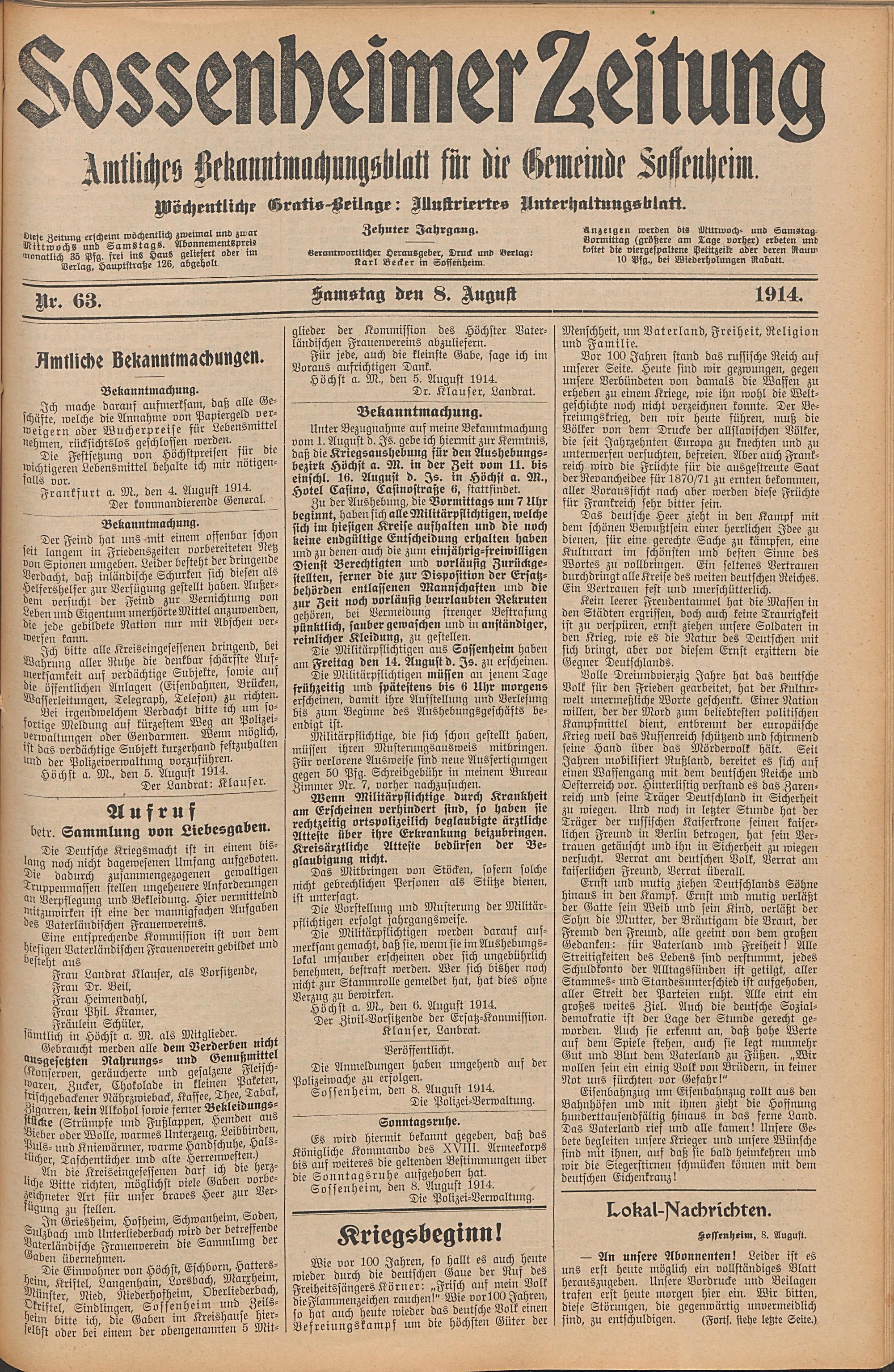 Regionale Zeitungen aus der Zeit des Ersten Weltkrieges