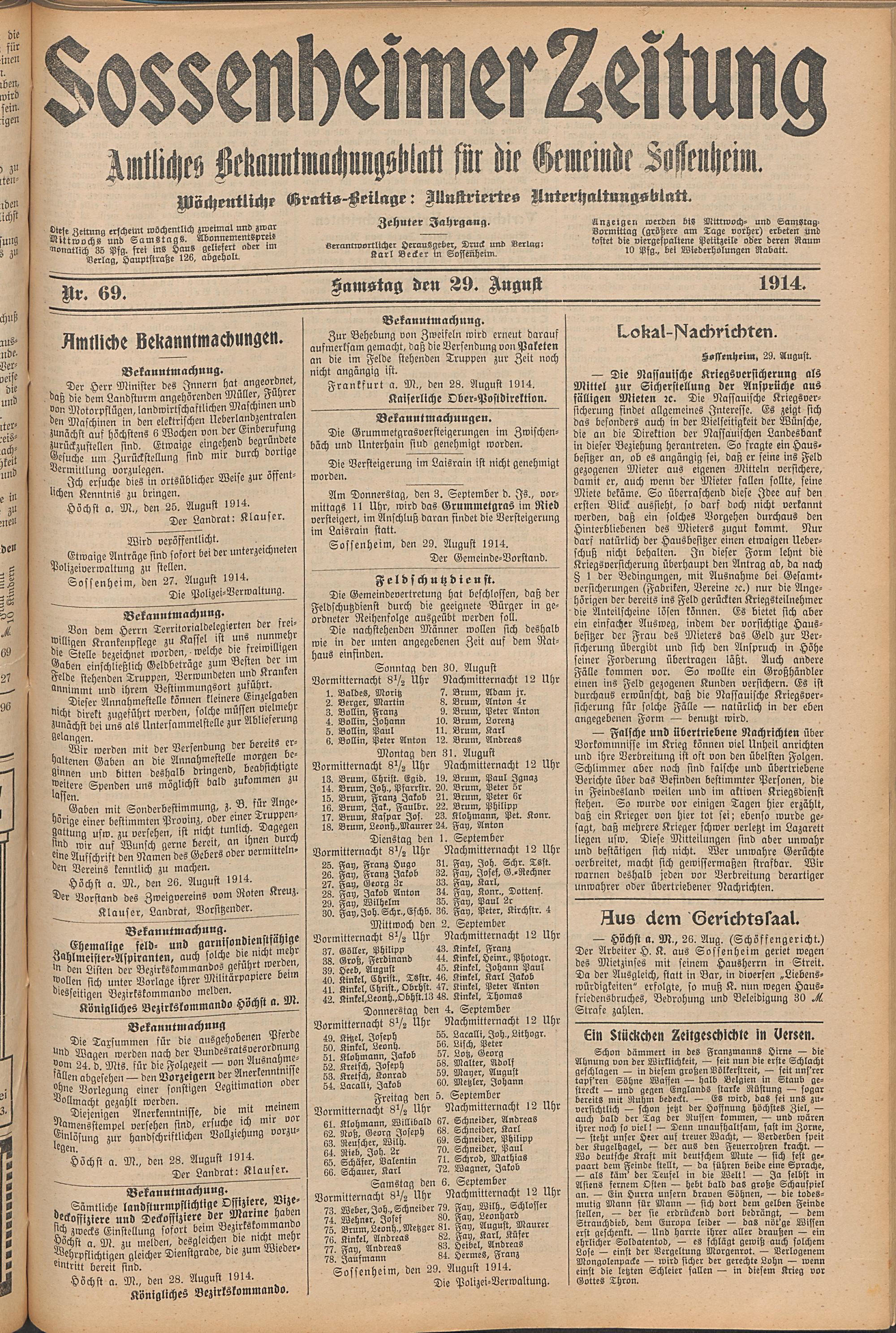 Regionale Zeitungen aus der Zeit des Ersten Weltkrieges
