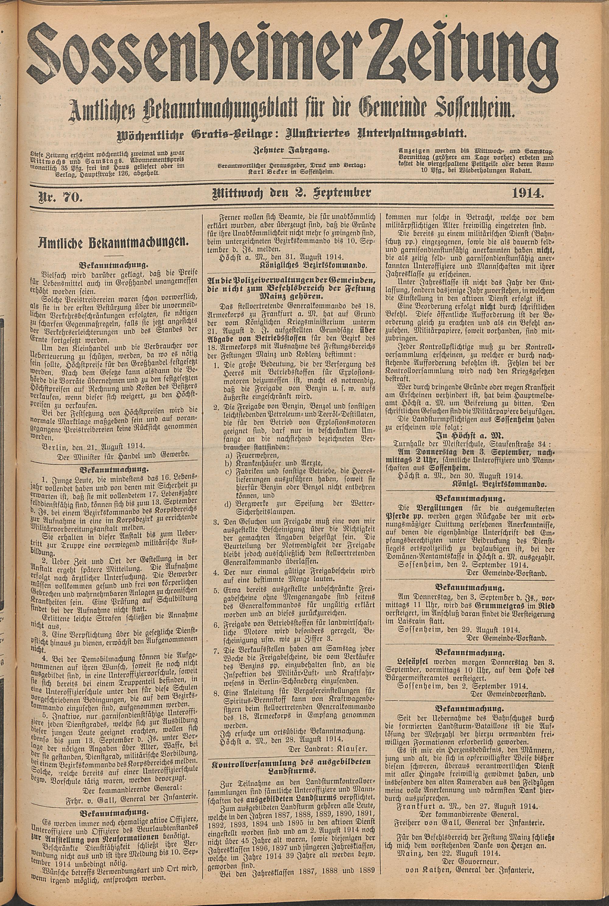 Sossenheimer Zeitung. 1906-1927