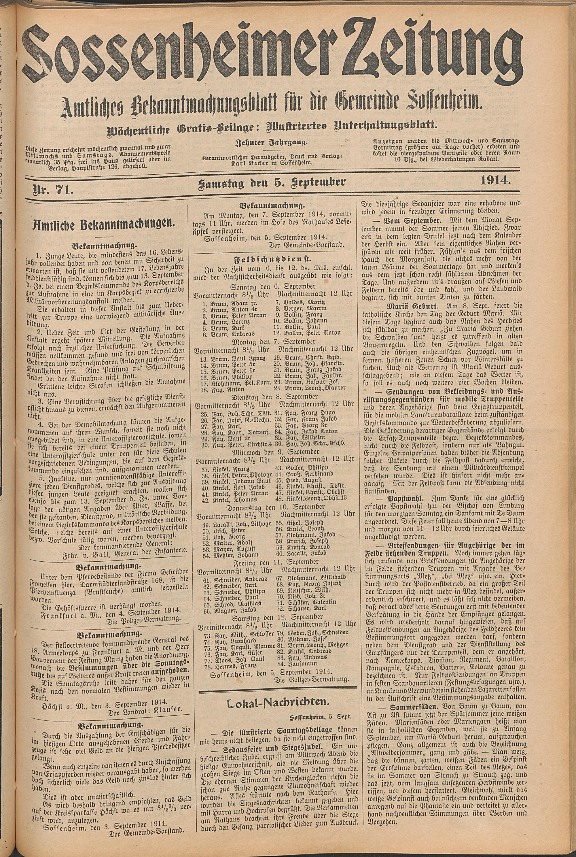 Regionale Zeitungen aus der Zeit des Ersten Weltkrieges