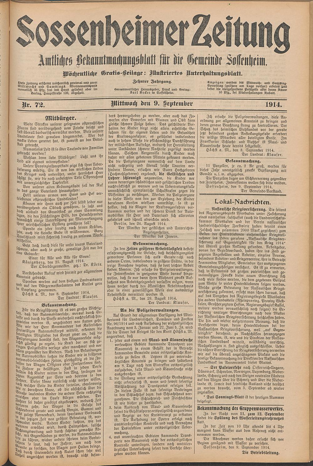 Regionale Zeitungen aus der Zeit des Ersten Weltkrieges