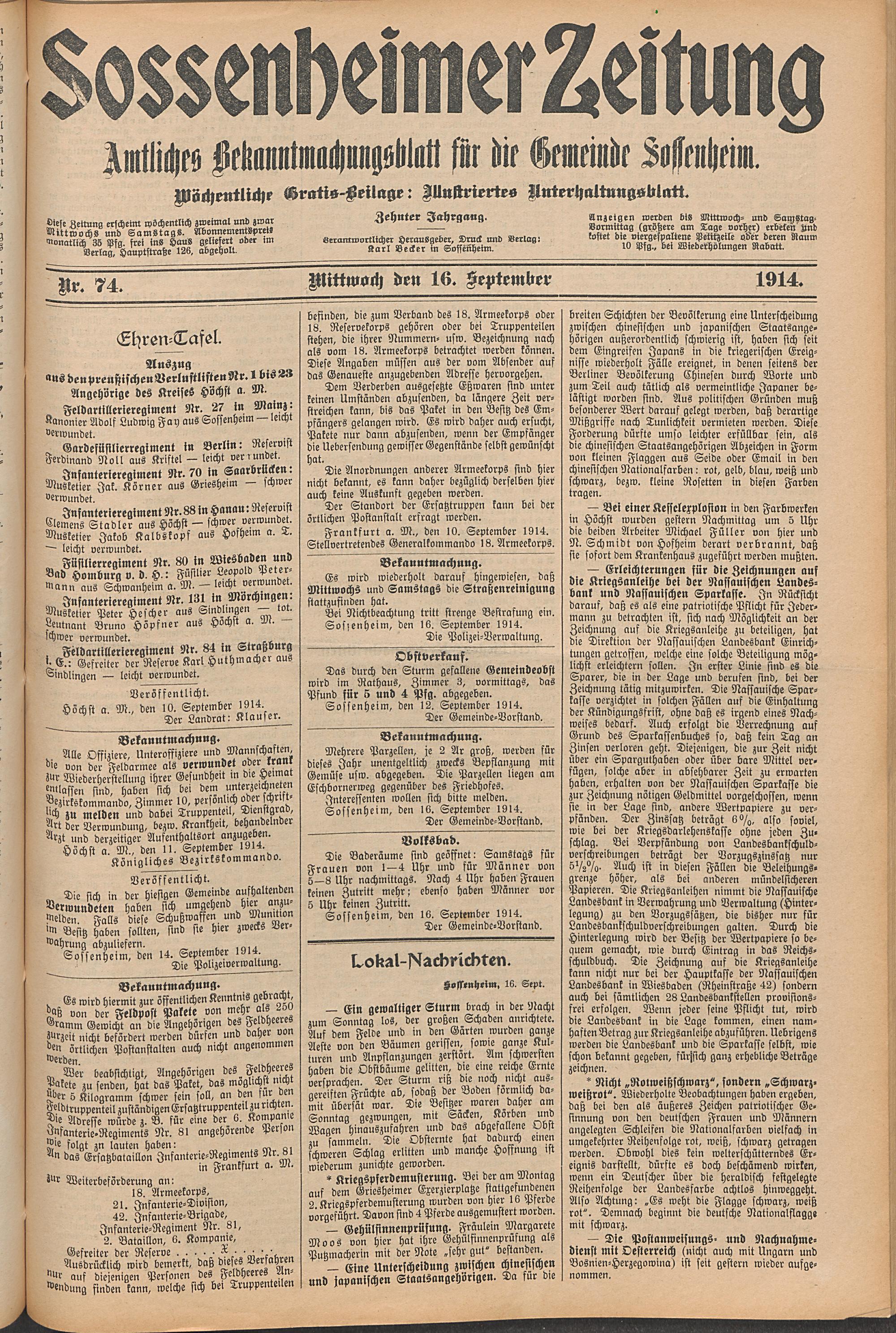 Sossenheimer Zeitung. 1906-1927