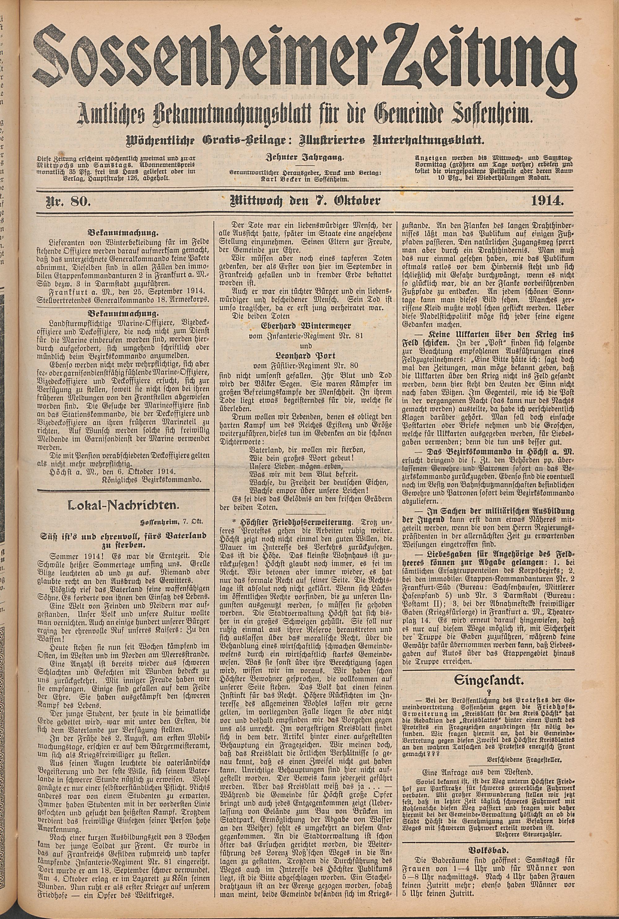 Sossenheimer Zeitung. 1906-1927