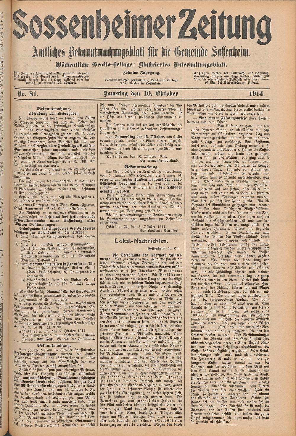 Sossenheimer Zeitung. 1906-1927