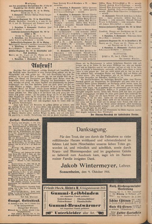 Regionale Zeitungen aus der Zeit des Ersten Weltkrieges