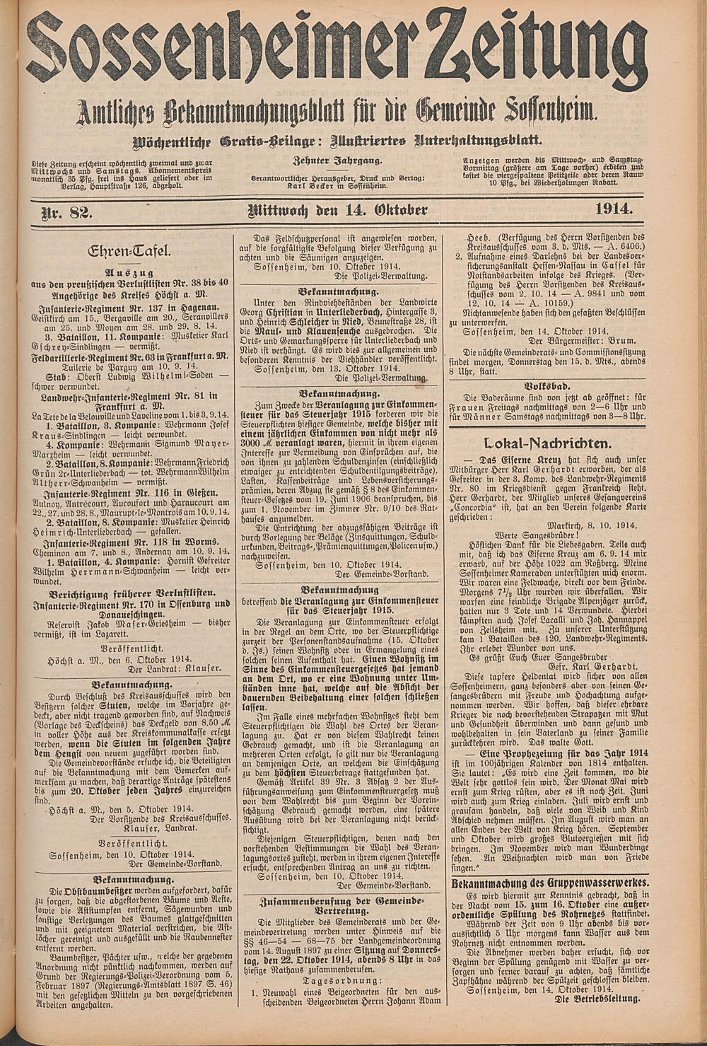 Regionale Zeitungen aus der Zeit des Ersten Weltkrieges