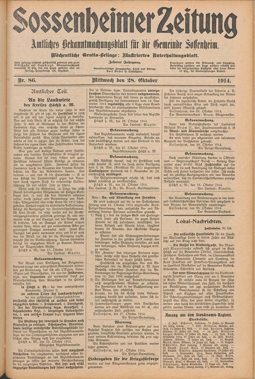 Regionale Zeitungen aus der Zeit des Ersten Weltkrieges