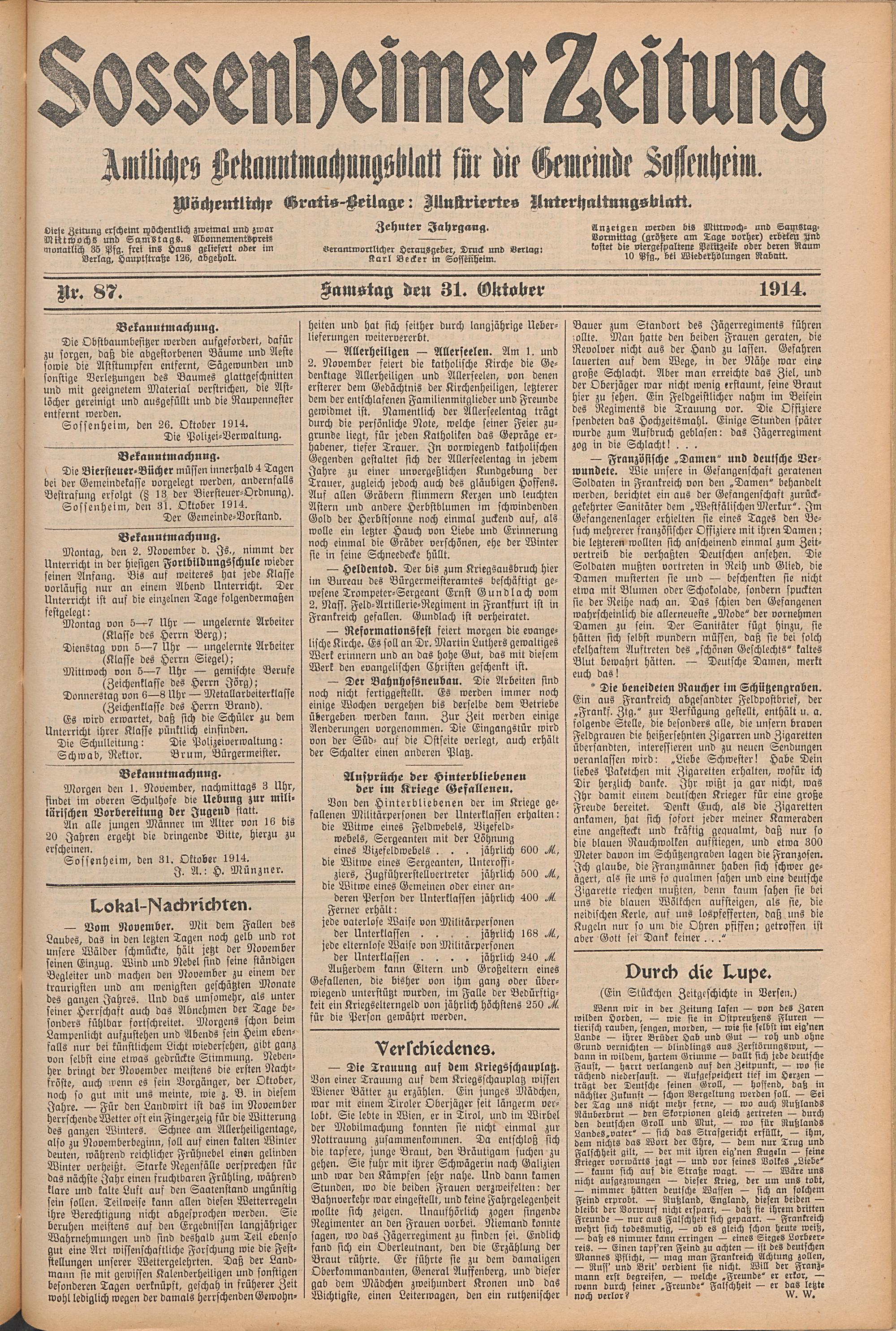 Regionale Zeitungen aus der Zeit des Ersten Weltkrieges