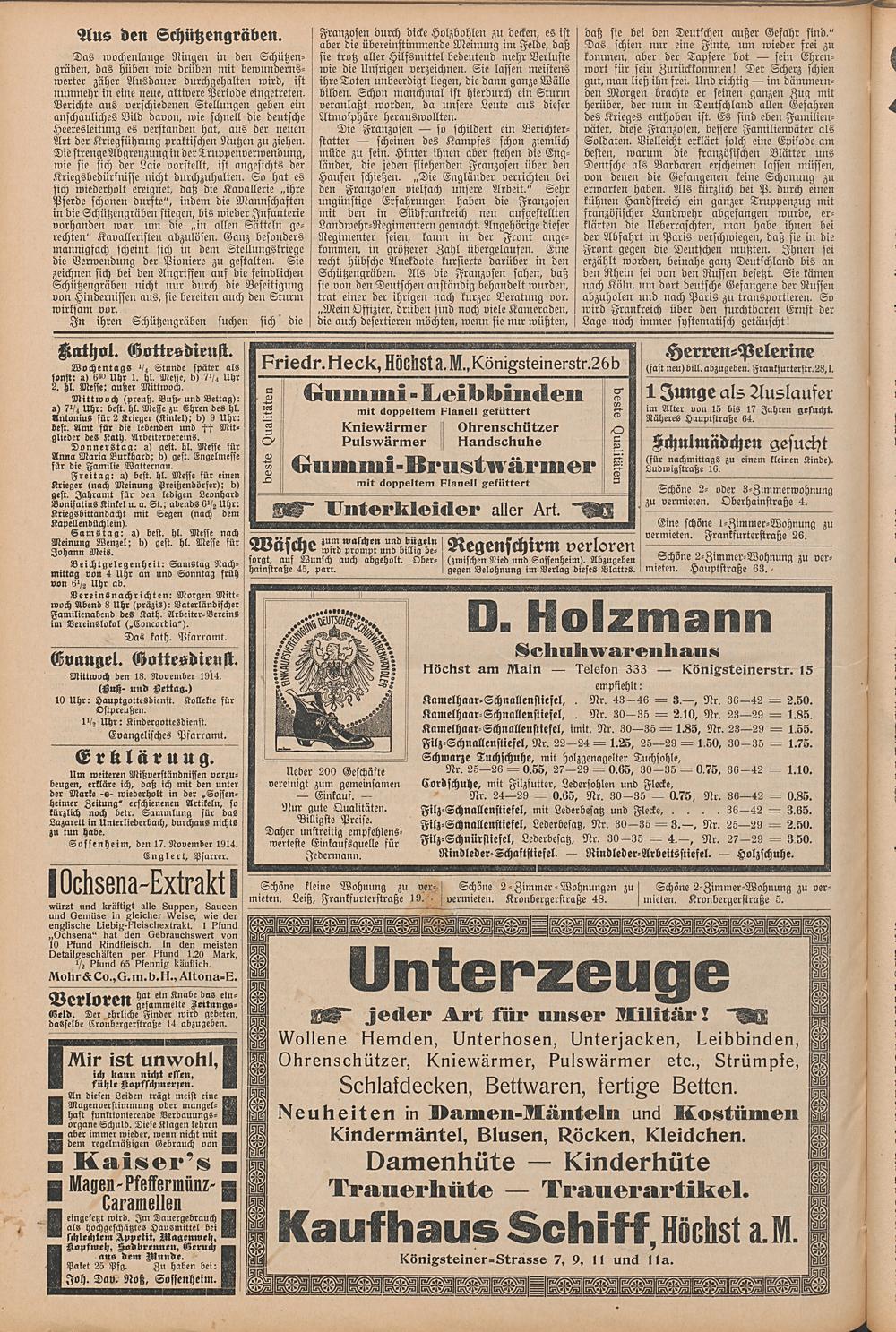 Regionale Zeitungen aus der Zeit des Ersten Weltkrieges