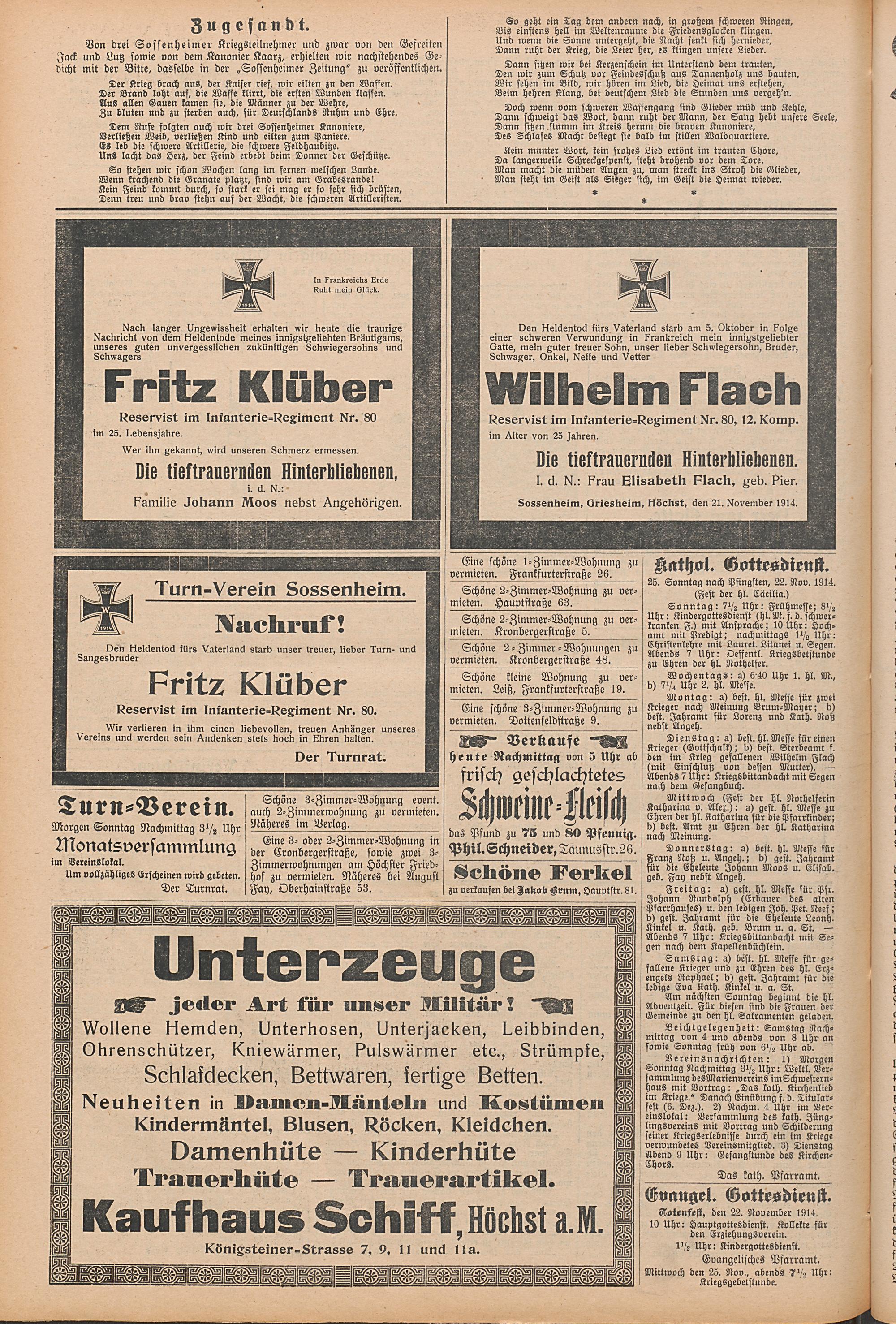 Regionale Zeitungen aus der Zeit des Ersten Weltkrieges
