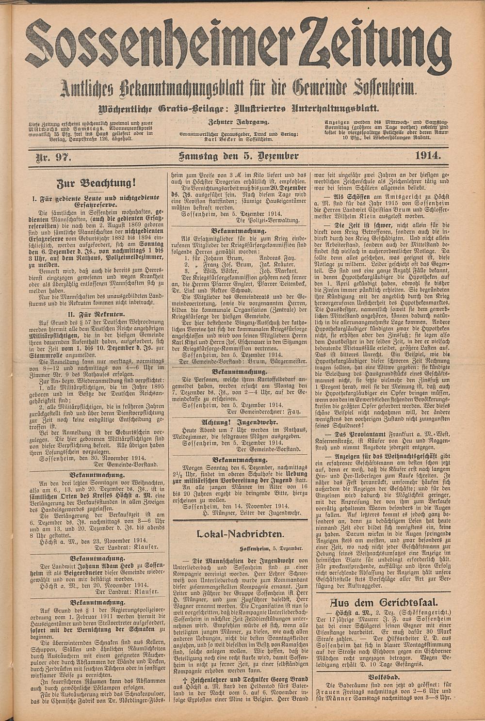 Sossenheimer Zeitung. 1906-1927