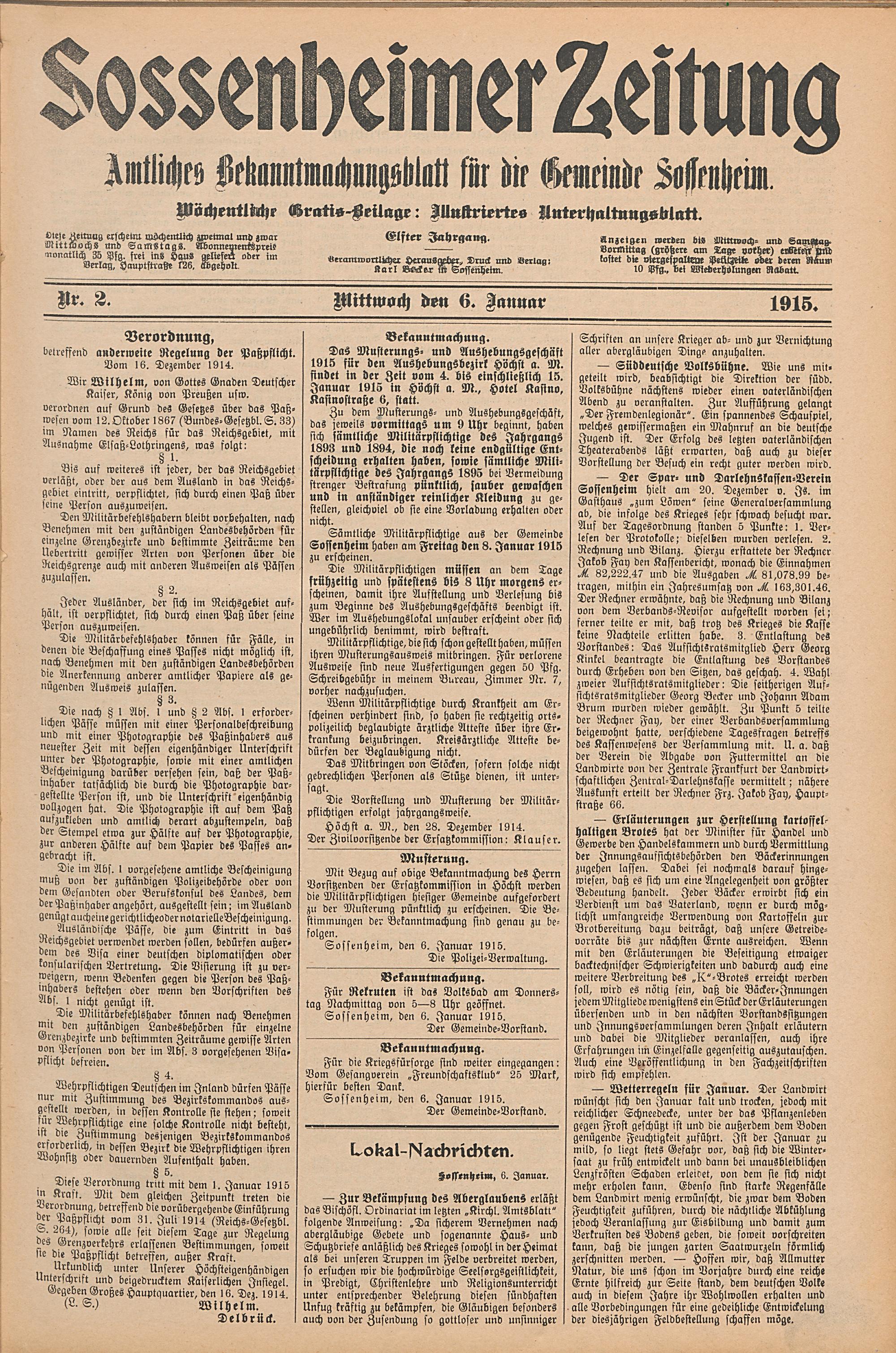 Regionale Zeitungen aus der Zeit des Ersten Weltkrieges