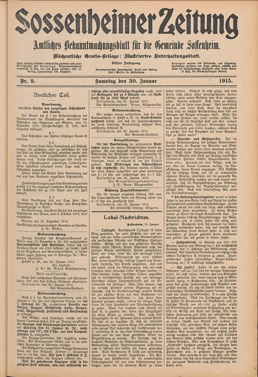 Regionale Zeitungen aus der Zeit des Ersten Weltkrieges