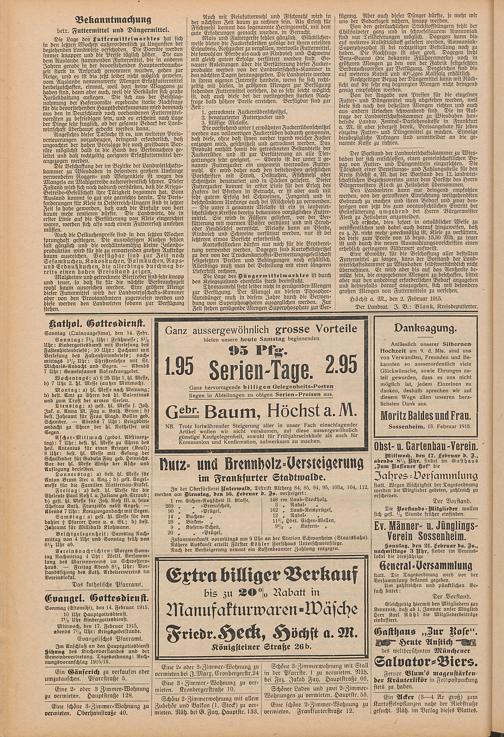 Regionale Zeitungen aus der Zeit des Ersten Weltkrieges