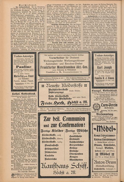 Regionale Zeitungen aus der Zeit des Ersten Weltkrieges
