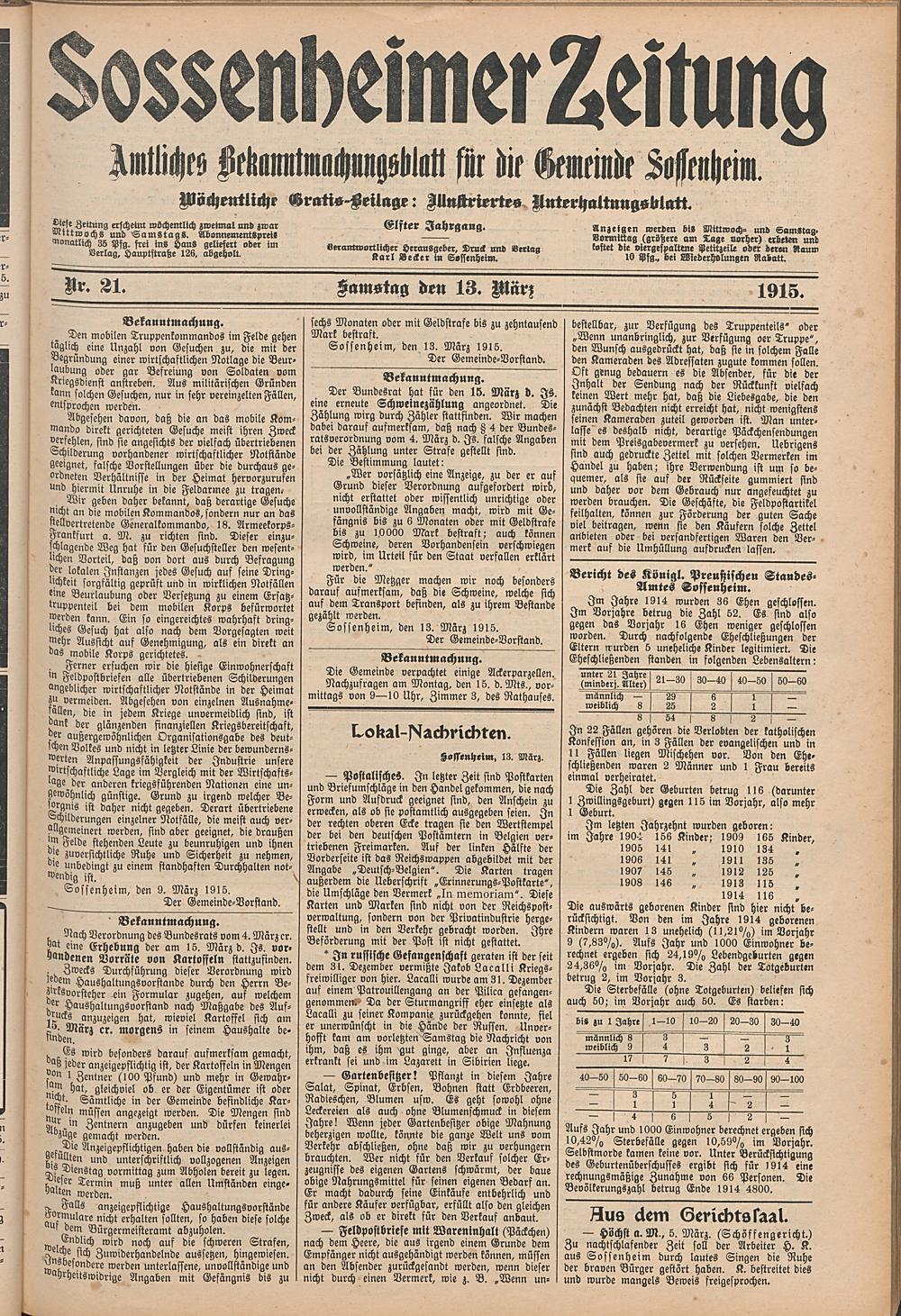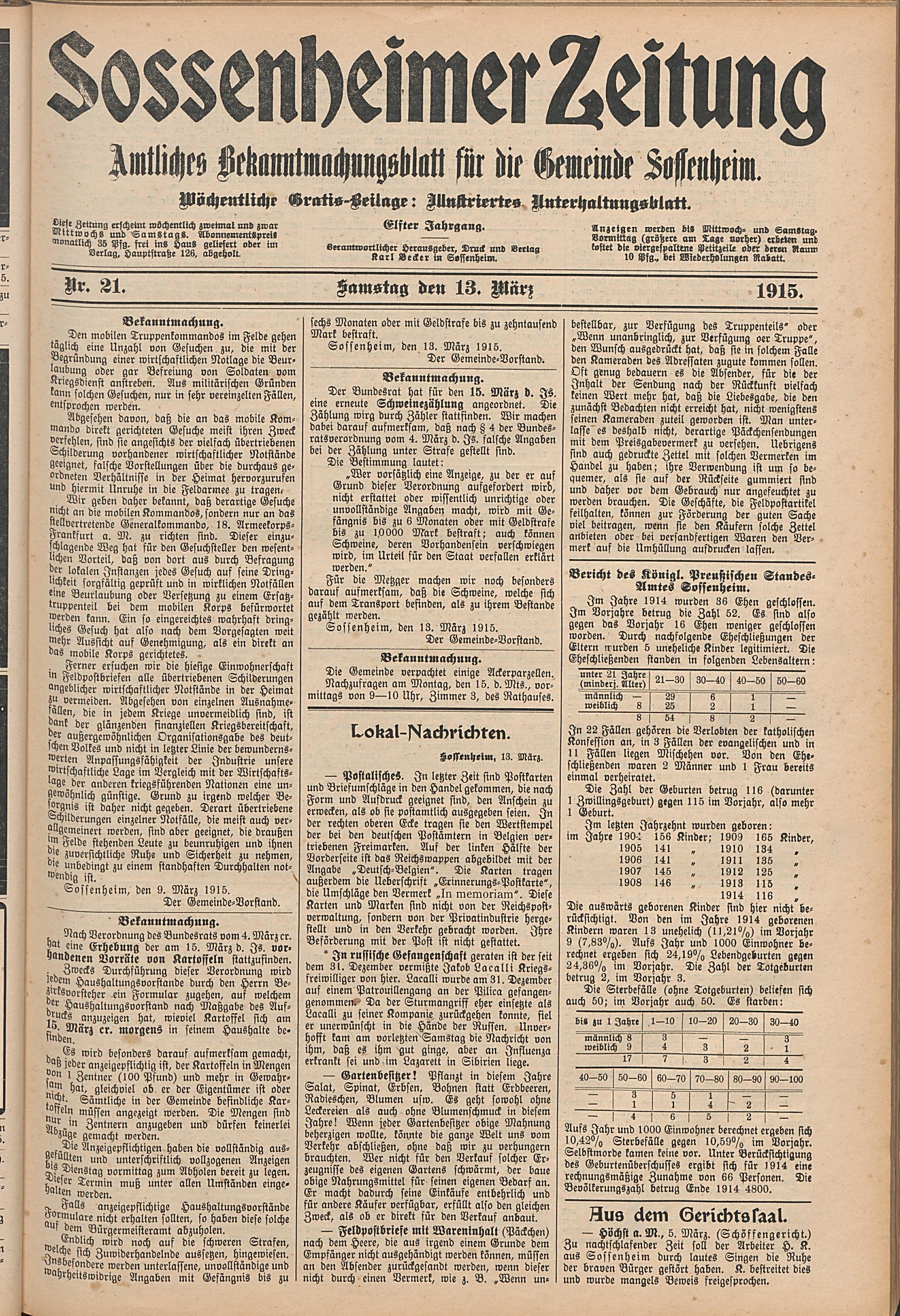 Regionale Zeitungen aus der Zeit des Ersten Weltkrieges