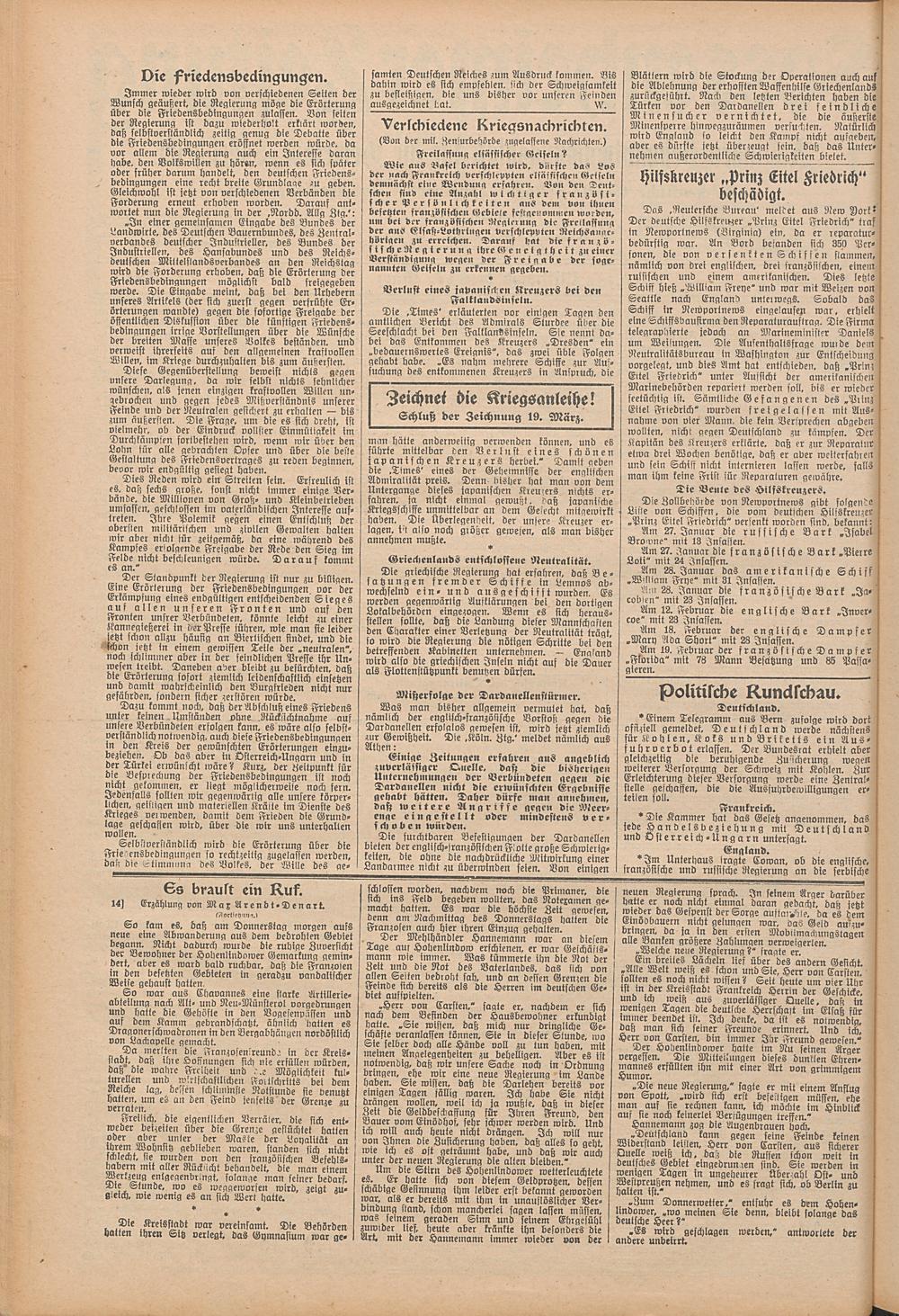 Regionale Zeitungen aus der Zeit des Ersten Weltkrieges