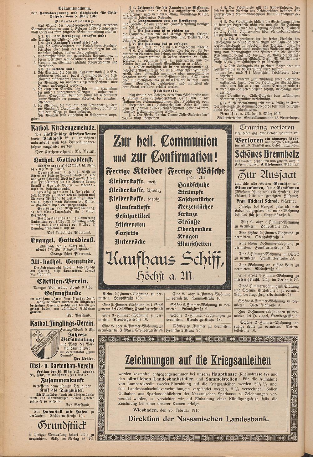 Regionale Zeitungen aus der Zeit des Ersten Weltkrieges