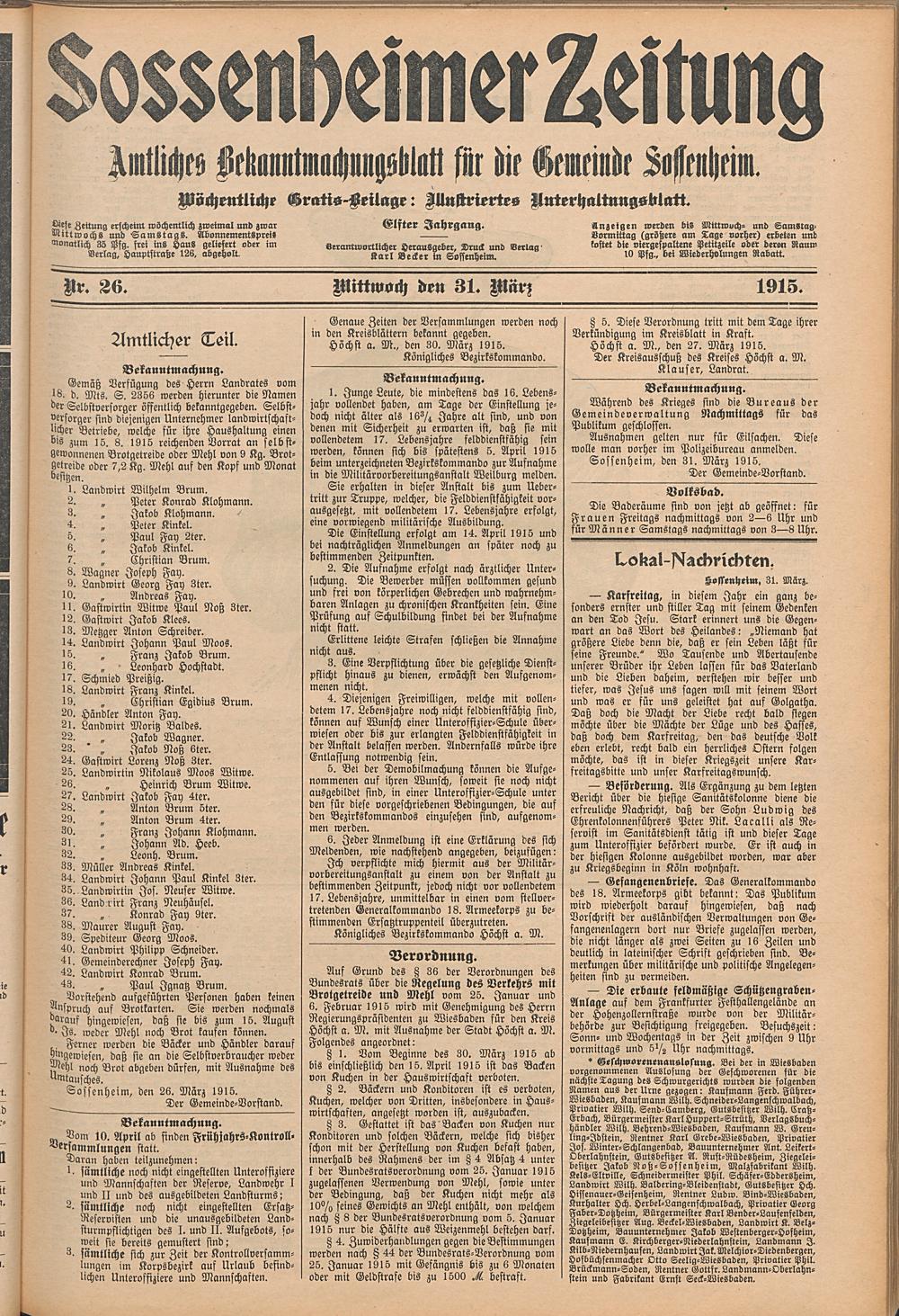 Sossenheimer Zeitung. 1906-1927