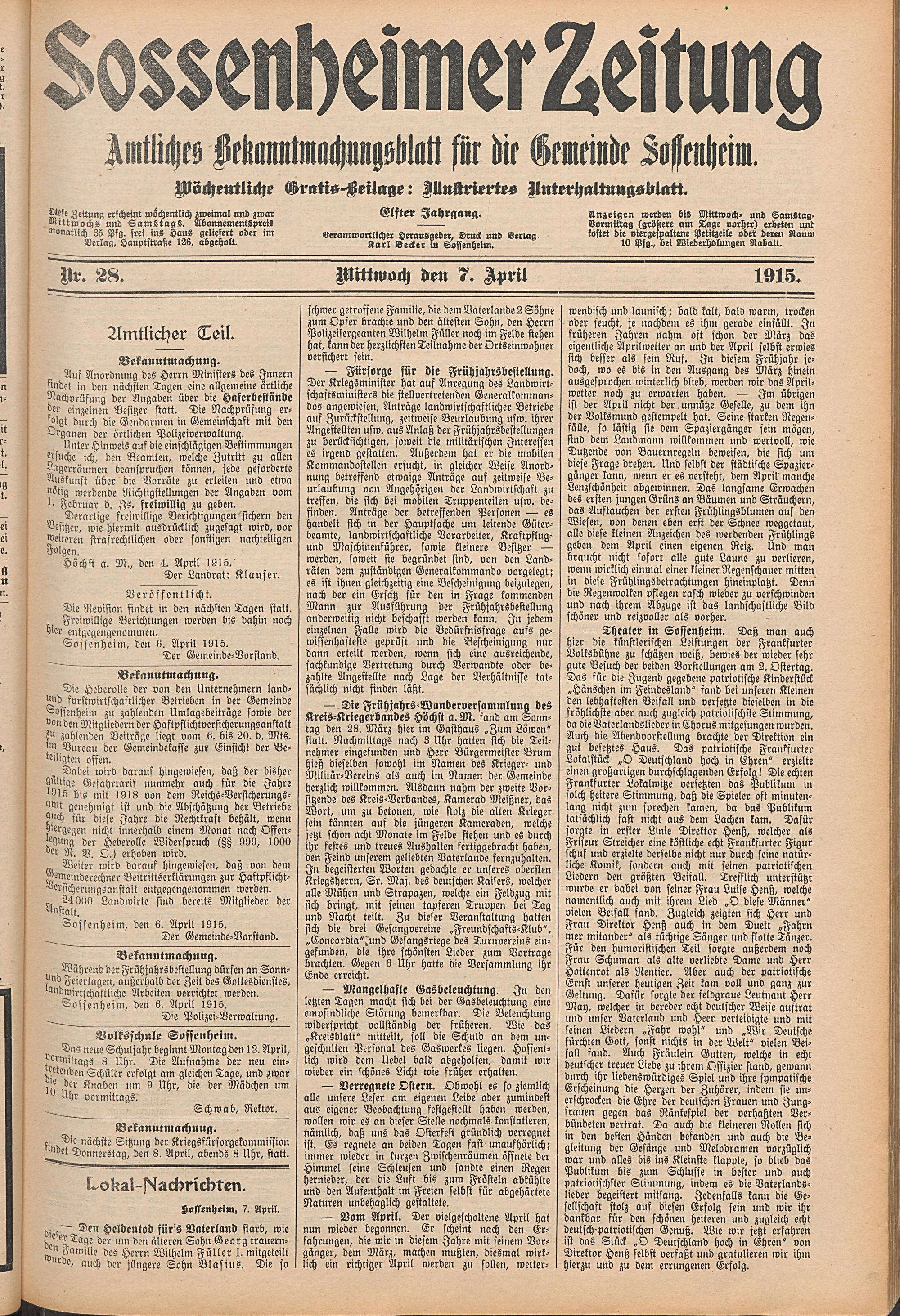 Regionale Zeitungen aus der Zeit des Ersten Weltkrieges