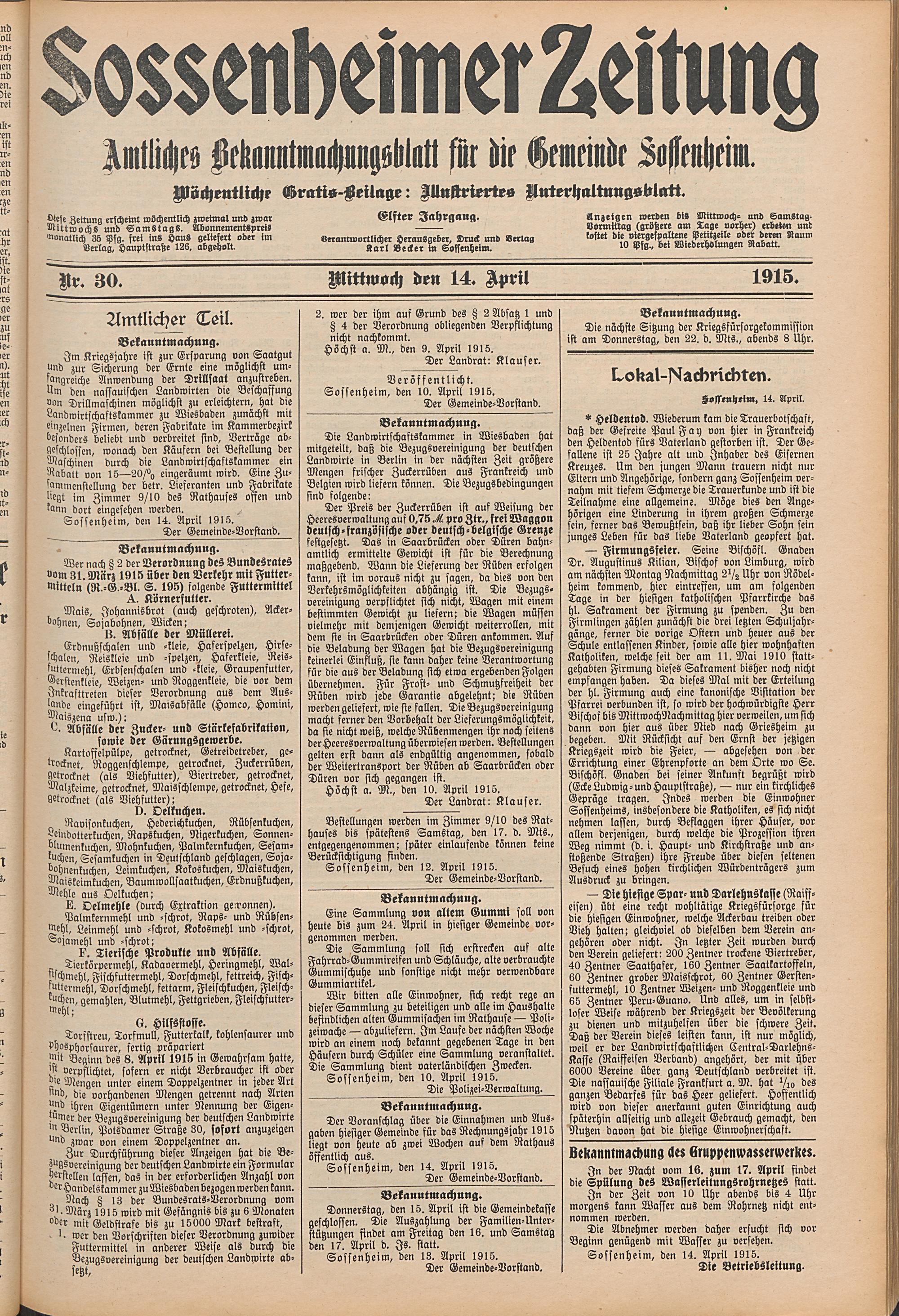 Regionale Zeitungen aus der Zeit des Ersten Weltkrieges